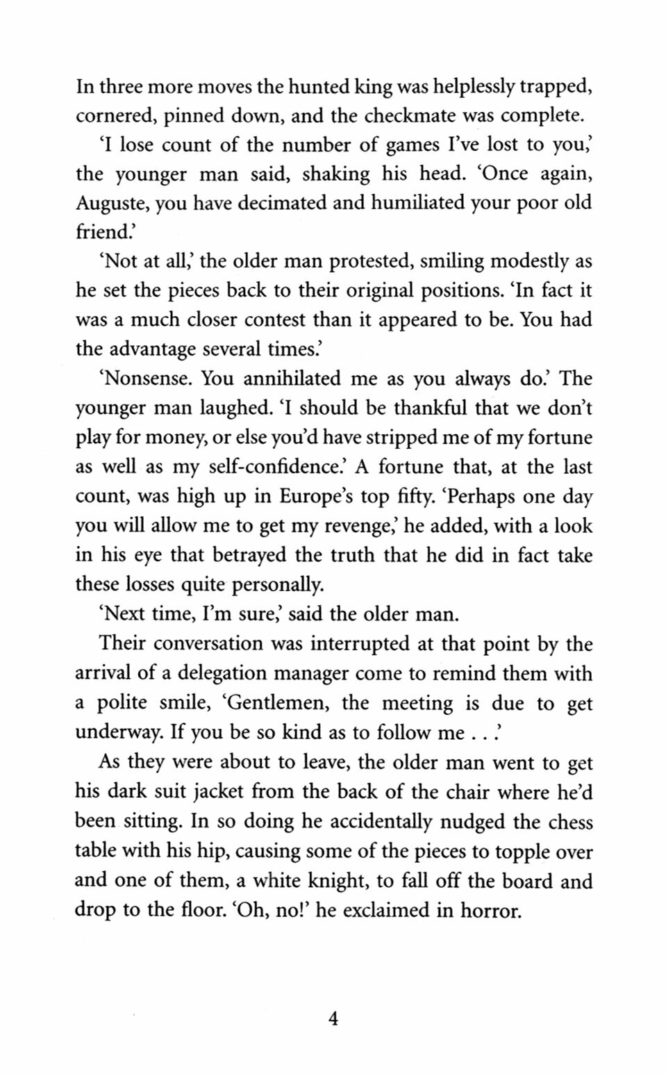 As Ben moves between Miami and the Bahamas, Rome to Berlin, his investigation seems only to bring him ever closer to death. And as he fights the odds, all questions lead back to one thing: the historic chess set, stolen by Auguste's attackers, which once belonged to Napoleon.