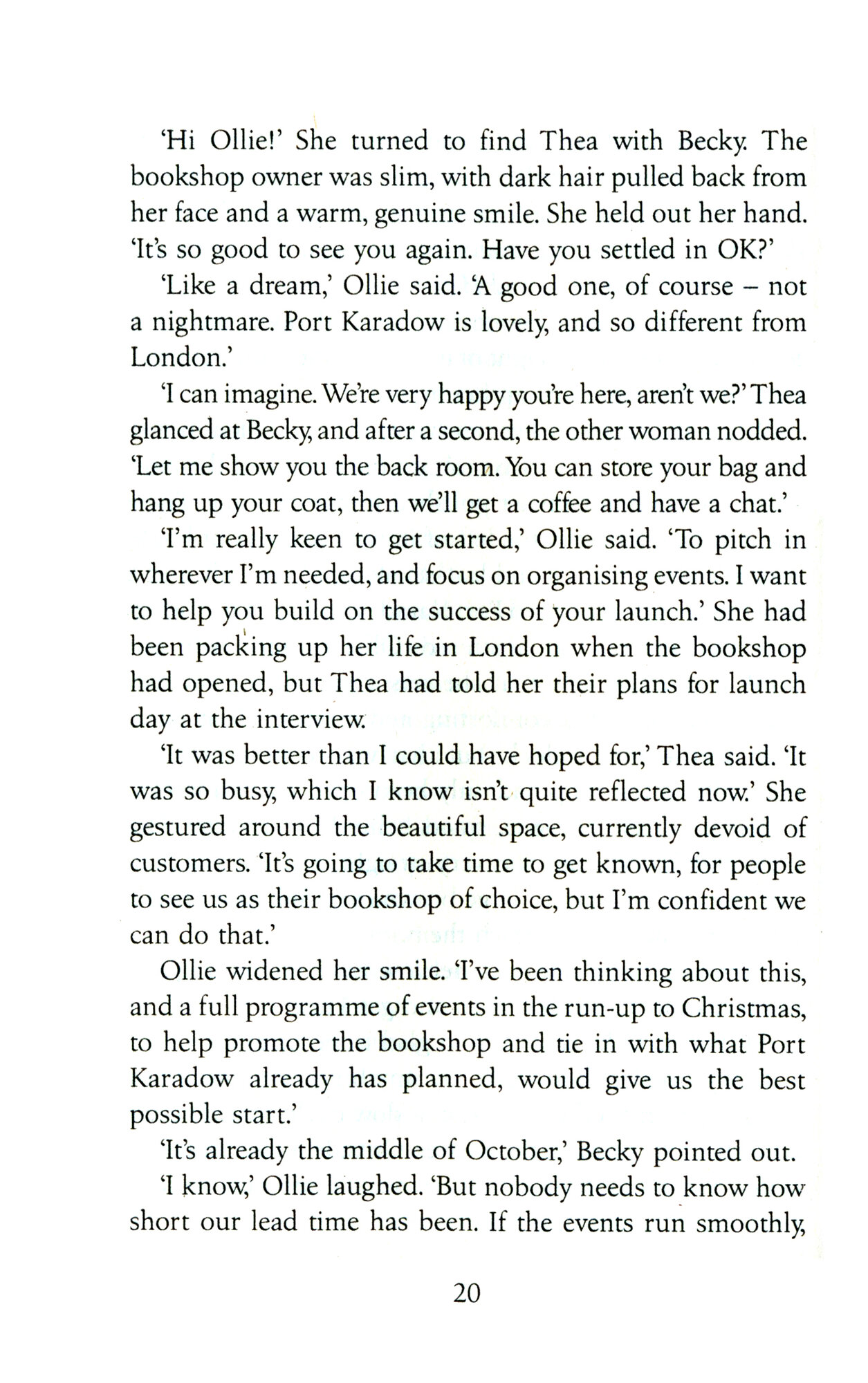 Ollie Spencer has started a new life in the idyllic Cornish seaside town of Port Karadow. Throwing herself into her job at the town’s bookshop, A New Chapter, is one way to make friends. The shop is glitzing up for first Christmas and Ollie hopes her inspired ideas will give the shop the edge it needs to dazzle the town.