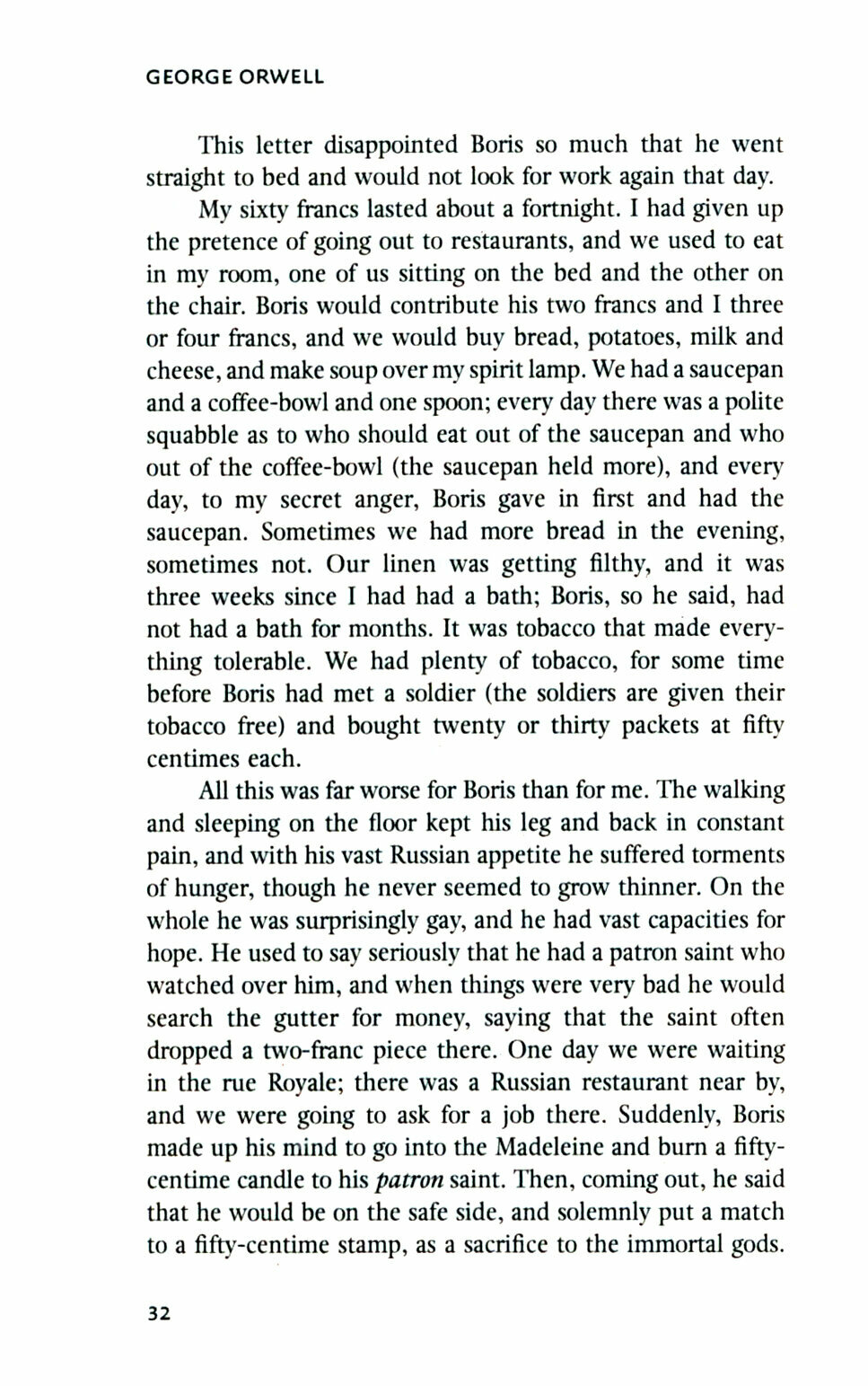 As a young man struggling to find his voice as a writer, George Orwell left the comfort of home to live in the impoverished working districts of Paris and London. He would document both the chaos and boredom of destitution, the eccentric cast of characters he encountered, and the near-constant pains of hunger and discomfort.