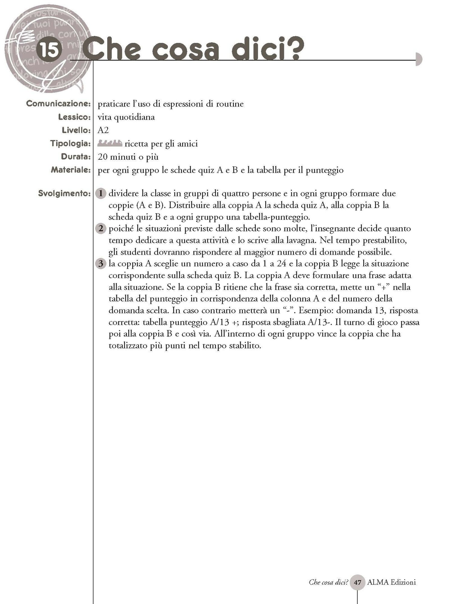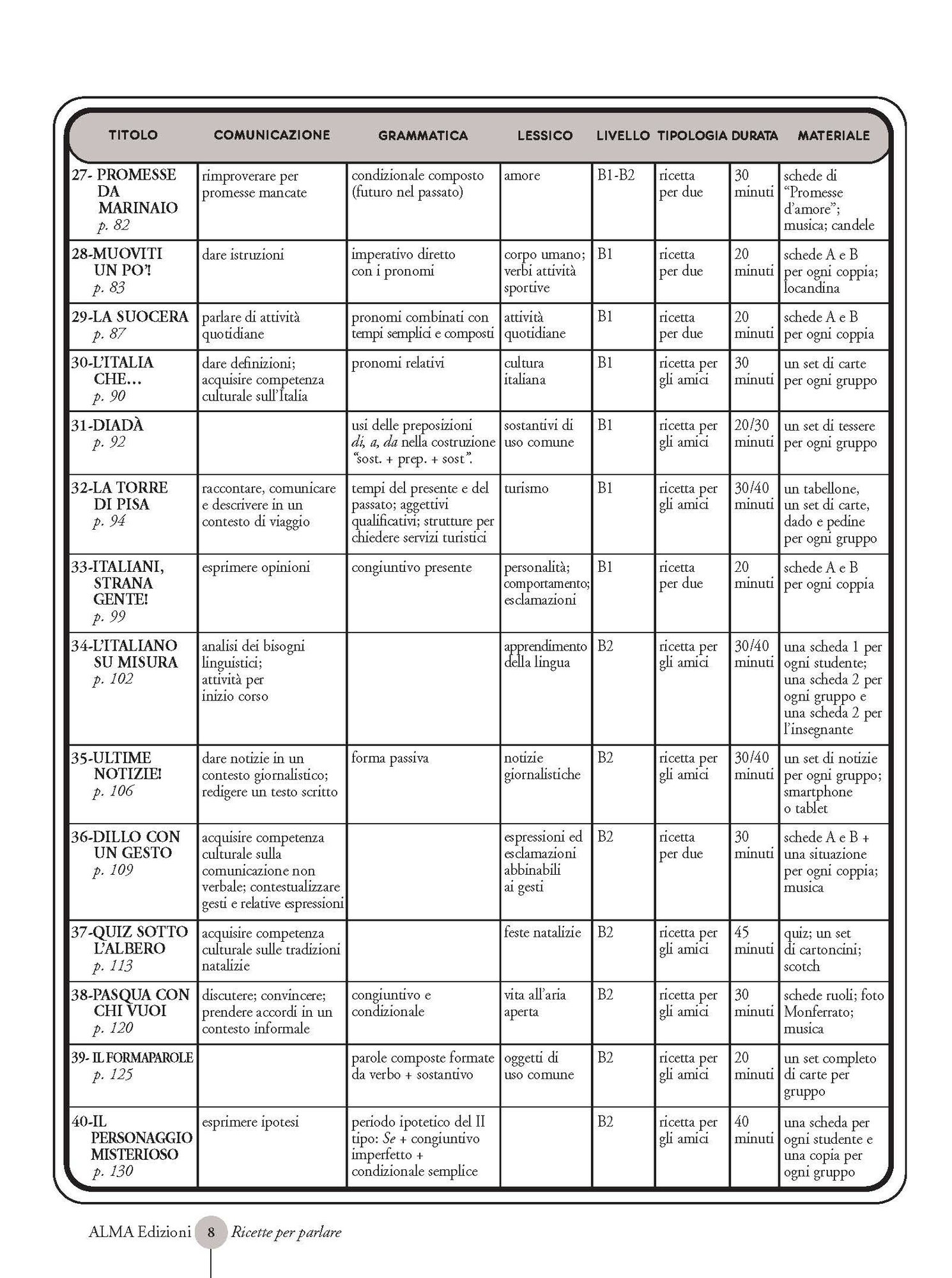 Per gli studenti, si tratta di divertenti proposte comunicative per imparare a parlare divertendosi.