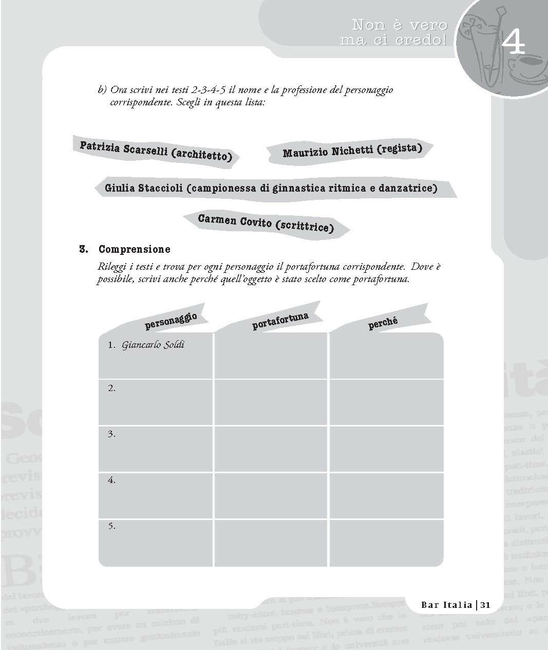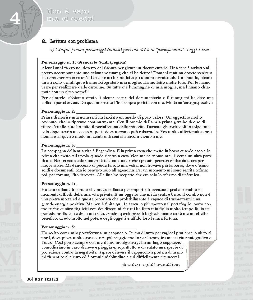 Bar Italia e adatto a studenti di livello post-elementare, intermedio e avanzato (A1-C1), e si propone come un utile strumento per avvicinarsi in modo non superficiale alla realta italiana, affinando al tempo stesso le conoscenze della lingua.