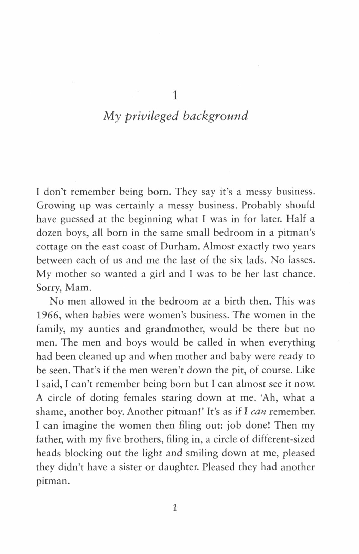 This is the memoir of a man who left school illiterate, but has now written a book. The story of a lost generation who were prepared for a life that had disappeared by the time they were ready for it, of communities with once strong social ties that have now disintegrated, and a way of living that simply no longer exists in Britain today.
