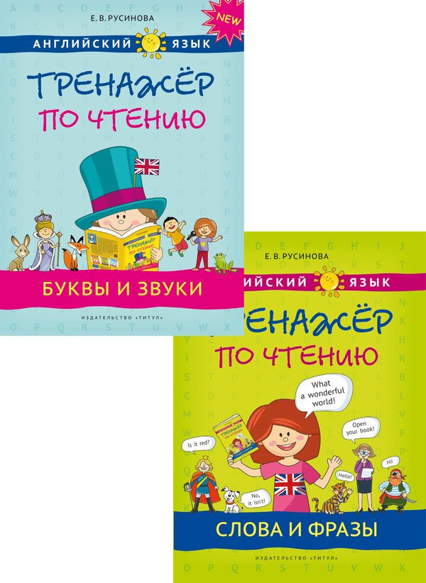 Комплект: Тренажер по чтению. Буквы и звуки. Слова и фразы. QR-код. Английский язык (комплект из 2-х книг) (Русинова Елена Васильевна); Титул, 2024