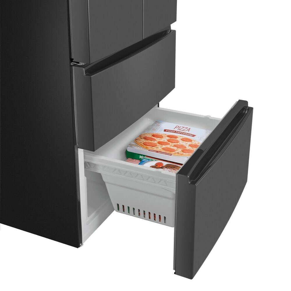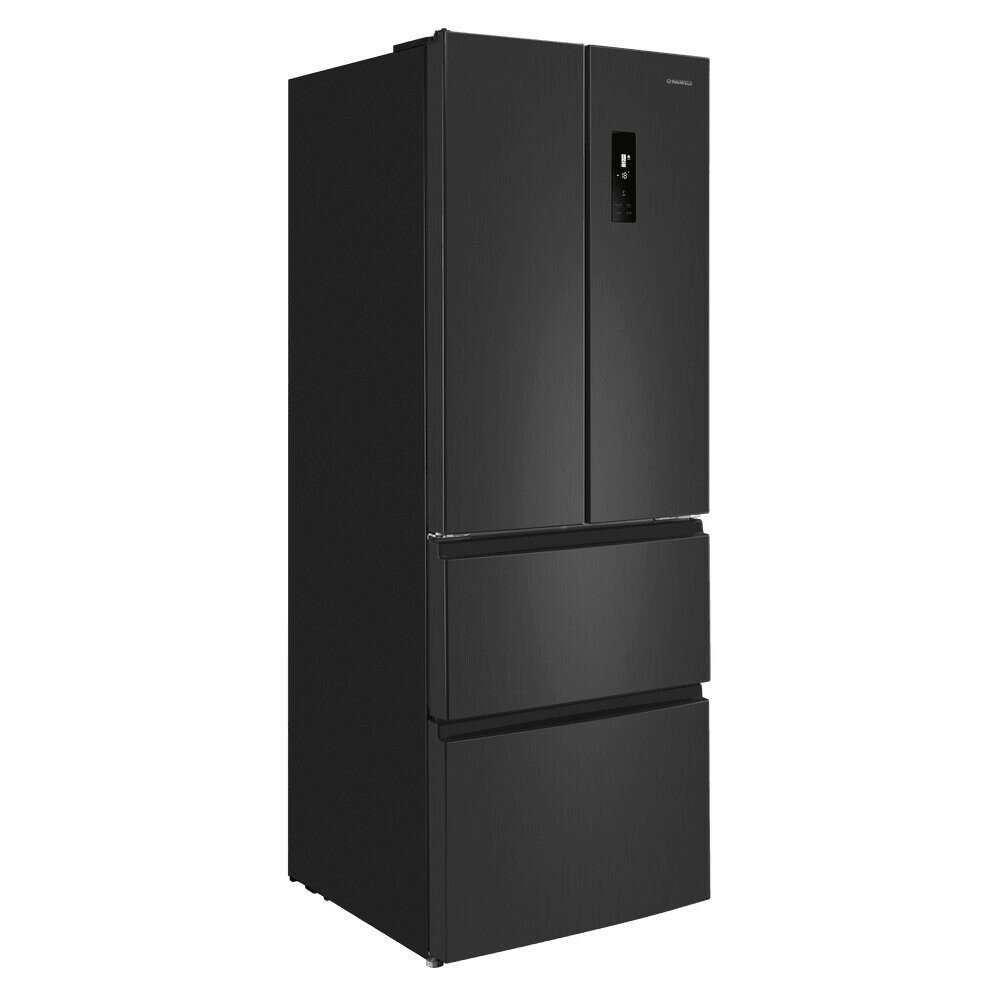 Холодильник Maunfeld с общим объемом 365 литров включает холодильную камеру на 224 литра и морозильный отсек вместимостью 113 литров. Он оснащен зоной свежести объемом 29 литров, где можно настроить необходимую температуру. Мощность замораживания морозильной камеры достигает 6 кг в сутки. Устройство может работать в режимах быстрого охлаждения, быстрого охлаждения напитков и режиме отпуска, при котором максимальная температура поддерживается постоянно во всех отделениях. Конструкция Maunfeld включает две дверцы с механизмом мягкого закрывания и внутренними ручками. Устройство оборудовано электронным управлением, сенсорным экраном, индикаторами включения, режима работы и текущих температур в холодильной, морозильной камерах и зоне свежести. Присутствует светодиодное освещение и внутреннее антибактериальное покрытие. При отключении электроэнергии Maunfeld способен сохранять холод в течение 6 часов. Морозильная камера: снизу; Размораживание холодильной камеры: No Frost; Размораживание морозильной камеры: No Frost; Тип управления: электронное; Тип компрессора: инверторный; Мощность замораживания: 6 кг/сут; Автономное сохранение холода: 6 ч; Режимы: отпуск, суперзаморозка, суперохлаждение;