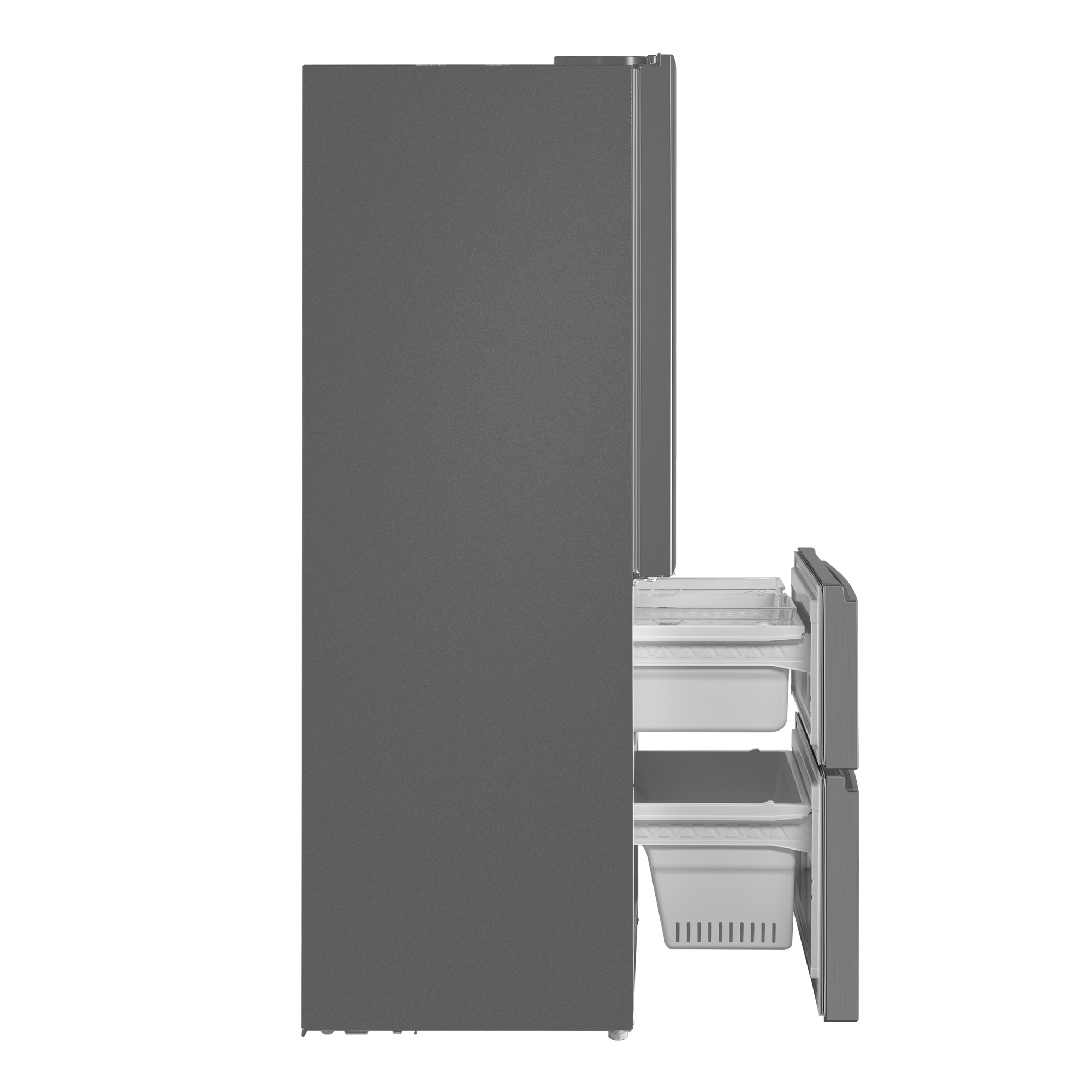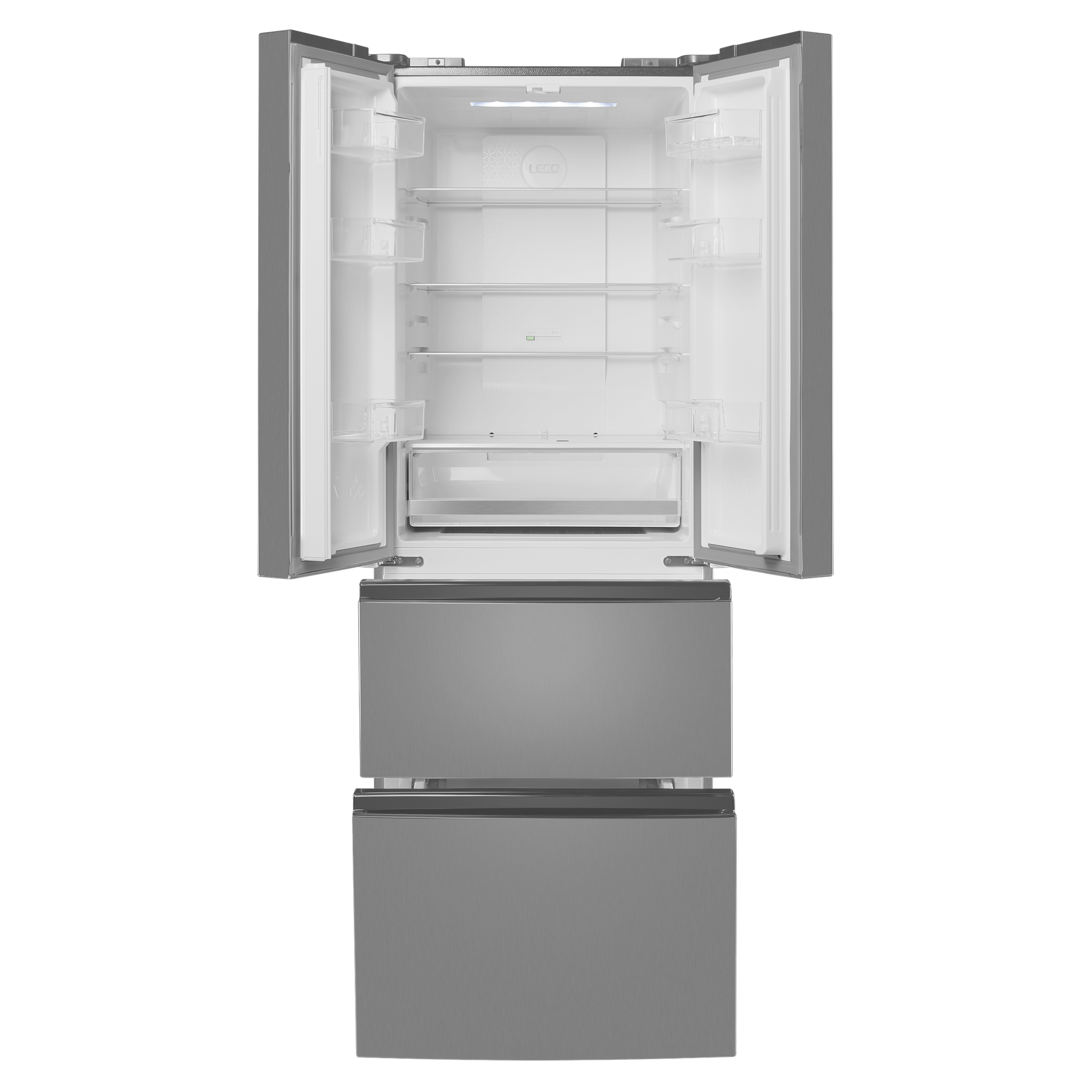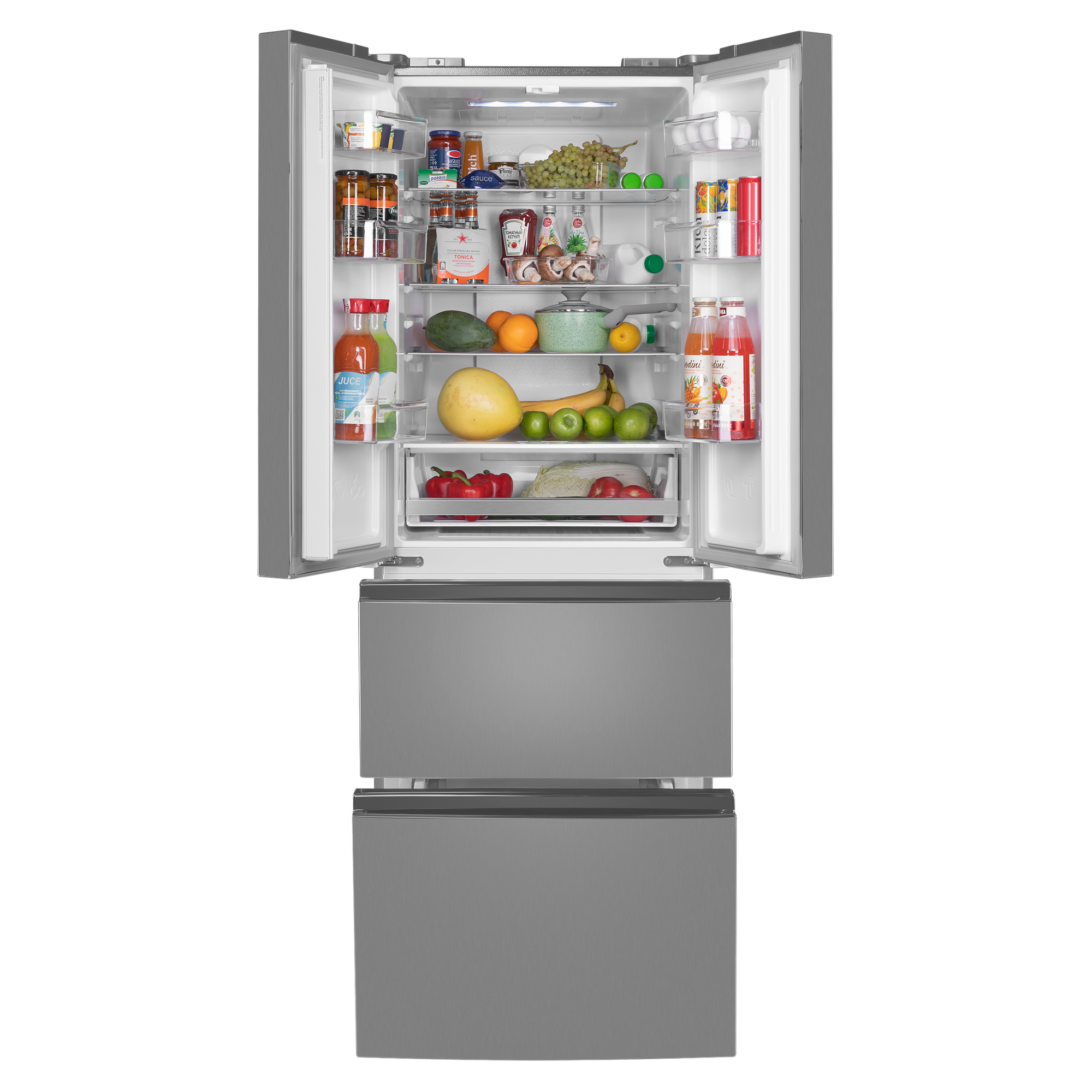 Зона свежести создаёт все условия, чтобы содержимое холодильника как можно дольше оставалось свежим. В зоне для хранения мяса и рыбы с регулируемой температурой от 0 °C до -3 °C продукты остаются свежими в 3 раза дольше, а фрукты, овощи и зелень – даже в 5 раз дольше благодаря контролю уровня влажности.Ящик в холодильном отделении имеет регулировку режимов работы: режим Chill для хранения мяса, птицы или рыбы обеспечивает температуру около 0 градусов, а режим Vege для хранения фруктов и овощей - до 3 градусов.Холодильники с «французской дверцей» отличаются большой вместительностью и оригинальным дизайном. Выдвижные ящики морозильника превосходно удерживают холод и позволяют лучше разглядеть содержимое, чем распашные дверцы. Светодиодная подсветка даёт равномерный, яркий свет и обеспечивает отличный обзор пространства холодильника. Светодиоды потребляют меньше энергии, чем лампы накаливания, и служат намного дольше.С интеллектуальной технологией Total No Frost вы навсегда забудете о необходимости вручную размораживать холодильник и морозильную камеру. Благодаря равномерному распределению холодного воздуха в камере и на продуктах не образуется лёд.Полки из закалённого ударопрочного стекла позволяют хранить крупные и габаритные продукты и тяжёлую посуду. Полки оснащены стильными металлическими фреймами. И это не только декоративный элемент, придающий холодильнику современный вид: фреймы защищают от трещин и сколов, а также препятствуют стеканию жидкостей в случае их пролития.Регулируемые по высоте полки позволяют легко группировать продукты по типу. Организация продуктов внутри холодильника стала ещё удобнее.Внутреннее антибактериальное покрытие предотвращает образование плесени и размножение микробов. Это гарантия свежести во всех отношениях.Современный хладагент R600A «Зелёные» технологии абсолютно безвреден для окружающей среды. Такой хладагент не причиняет вреда озоновому слою.