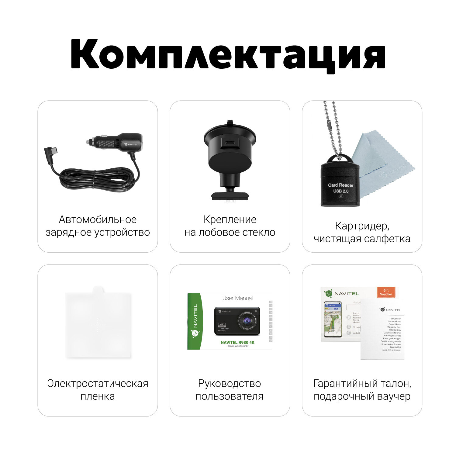 | Прочие особенности | Видеорегистратор NAVITEL R980 4K универсален: благодаря поддержке напряжения 12 и 24 В устройство совместимо с легковыми и грузовыми автомобилями. Встроенный конденсатор обеспечивает корректное завершение записей после отключения внешнего питания. Для удаленного управления используется приложение Navitel DVR Center., Видеорегистратор NAVITEL R980 4K оснащен светочувствительной матрицей Sony IMX415. Модель обеспечивает высокое качество съемки при любой освещенности. Максимальное разрешение видеозаписи 3840x2160 (UltraHD) гарантирует повышенную детализацию изображения. Возможность фиксации особенностей внешности людей, дефектов дорожного покрытия и других мелких деталей может быть полезна при разборе ДТП или других чрезвычайных ситуаций. Дополнительная функция регистратора – съемка фотографий., Угол обзора объектива прибора – 140°. Регистратор захватывает не только соседние ряды, но и происходящее за пределами проезжей части. Для фиксации устройства на лобовом стекле используется присоска. Этот тип крепления упрощает перенос регистратора из одного транспортного средства в другое. |