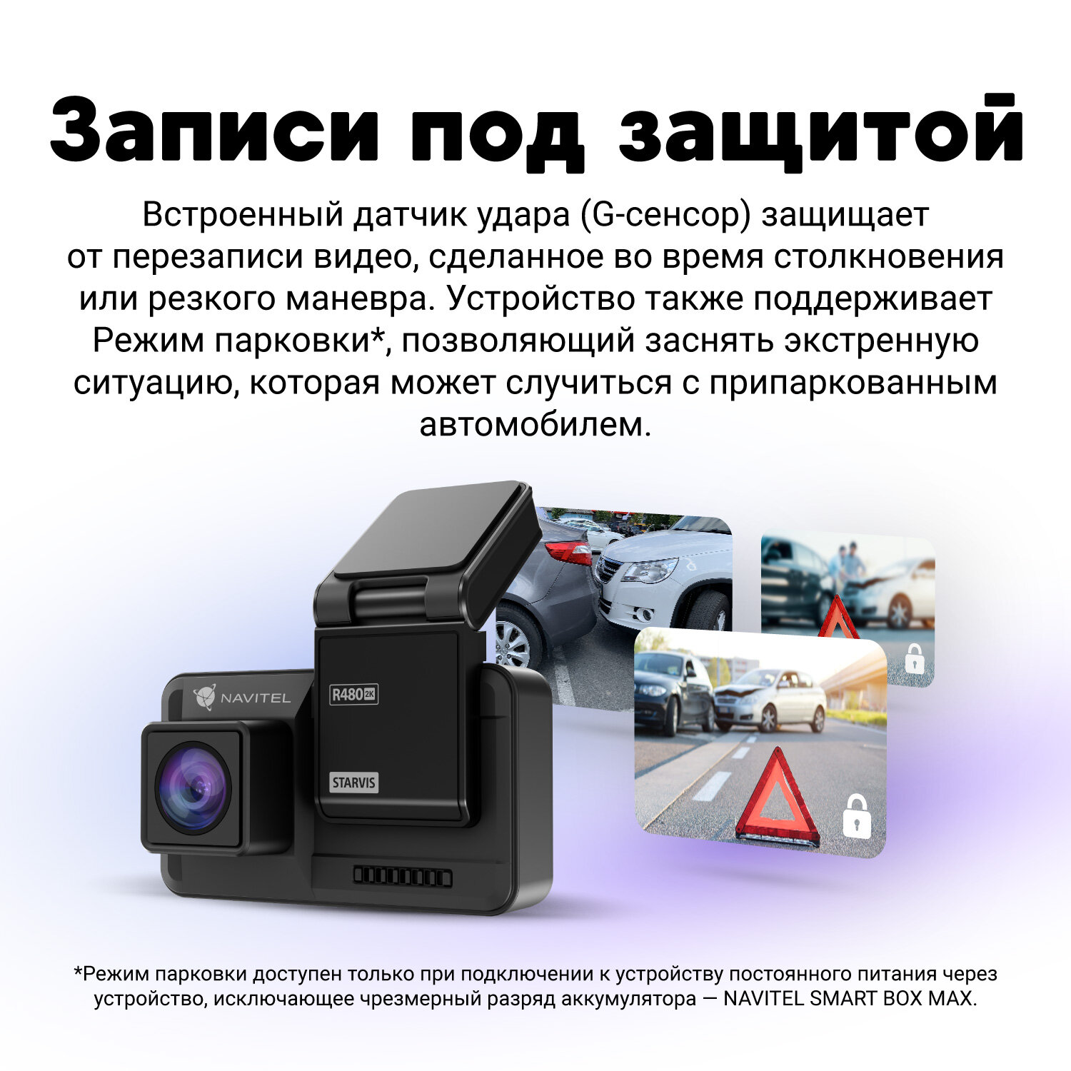 | Дополнительно * | Видеорегистратор NAVITEL R980 4K универсален: благодаря поддержке напряжения 12 и 24 В устройство совместимо с легковыми и грузовыми автомобилями. Встроенный конденсатор обеспечивает корректное завершение записей после отключения внешнего питания. Для удаленного управления используется приложение Navitel DVR Center., Видеорегистратор NAVITEL R980 4K оснащен светочувствительной матрицей Sony IMX415. Модель обеспечивает высокое качество съемки при любой освещенности. Максимальное разрешение видеозаписи 3840x2160 (UltraHD) гарантирует повышенную детализацию изображения. Возможность фиксации особенностей внешности людей, дефектов дорожного покрытия и других мелких деталей может быть полезна при разборе ДТП или других чрезвычайных ситуаций. Дополнительная функция регистратора – съемка фотографий., Угол обзора объектива прибора – 140°. Регистратор захватывает не только соседние ряды, но и происходящее за пределами проезжей части. Для фиксации устройства на лобовом стекле используется присоска. Этот тип крепления упрощает перенос регистратора из одного транспортного средства в другое. |
