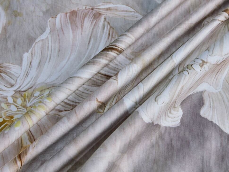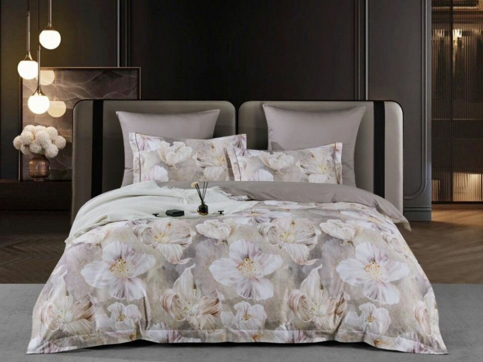 Комплект постельного белья евро Anabella Asabella цветы на серо-бежевом простыня серо-бежевая (2109-6)