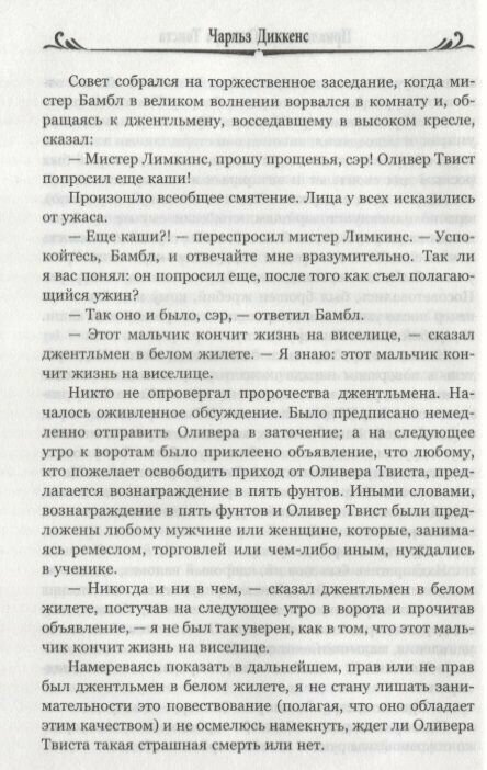 Этот роман Чарльза Диккенса (1812-1870) полюбился читателям по многим причинам. Автор сумел показать жизнь всего английского общества, изобразив художественный срез от мрачных трущоб до роскошных особняков Лондона. Как не сочувствовать ангелоподобному мальчику-сироте, которому зло органически претит? А зла в обличье уродливых злодеев здесь предостаточно. Роман неоднократно был экранизирован, а на Бродвее и в Лондоне с огромным успехом шли мюзиклы по этому произведению.