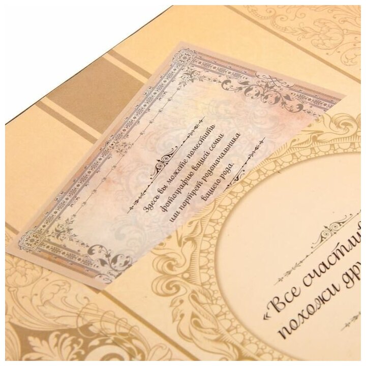 Наследие дома в одной книге! Семья-самое ценное, что есть в жизни человека. Кто из нас не хочет оставить память о себе и своей семье будущим поколениям? Ведь история может быть поводом для гордости! Для создания летописи вам пригодится родословная книга с местом под общее фото на обложке. Том хранится в изысканном футляре, который защитит страницы от повреждений. Книга оберегает важную информацию и помогает шаг за шагом погружаться в прошлое. Книга включает в себя: руководство по заполнению; разделы: «Род отца», «Род матери», «Род жены (мужа)», «Словарь терминов родства», «Происхождение фамилии», «Таланты нашего рода», «Семейные предания и воспоминания», «Награды и отличия рода», «Семейные и кулинарные рецепты», «История родного края»; индивидуальные листы; календарь семейных дат; послание потомкам. Книга на кольцах содержит 50 листов (включая инструкции и наименования разделов)