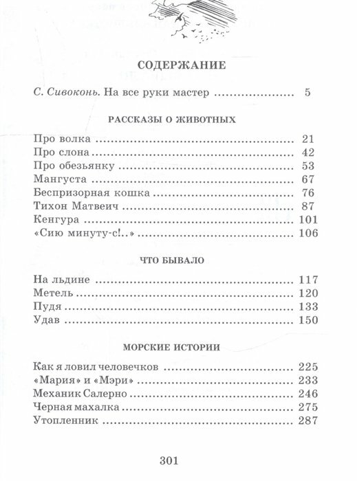 В книгу известного русского писателя вошли рассказы из циклов: "Рассказы о животных" ("Мангуста", "Кенгура" и др.), "Что бывало" ("На льдине", "Пудя" и др.) и "Морские истории" ("Как я ловил человечков", "Черная махалка" и др.). Для среднего школьного возраста.
