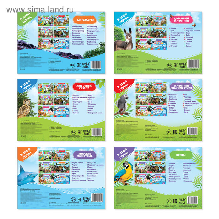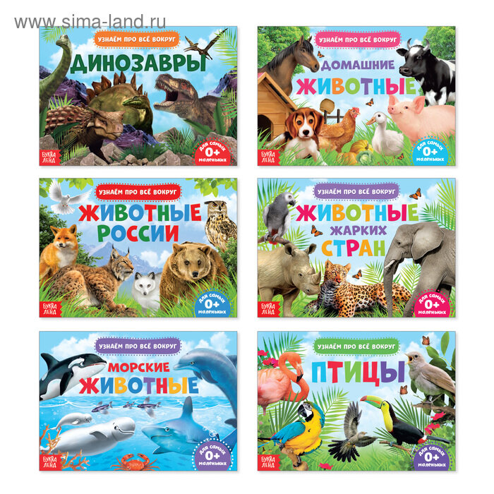 Материал в обучающих книгах "Узнаём про всё вокруг" направлен на разностороннее развитие малышей. В этих изданиях представлены различные тематики:"Птицы","Динозавры","Домашние животные","Животные жарких стран","Животные России","Морские животные". С книгами малыш узнает многое об образе жизни животных, их среде обитания и питании. Рекомендовано для чтения взрослыми детям с рождения.
