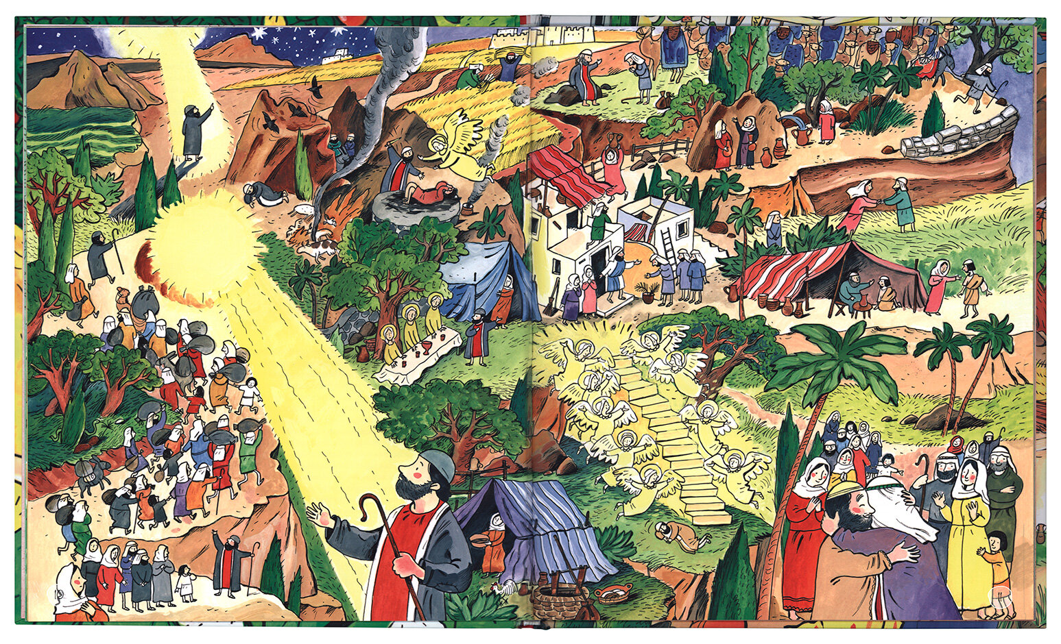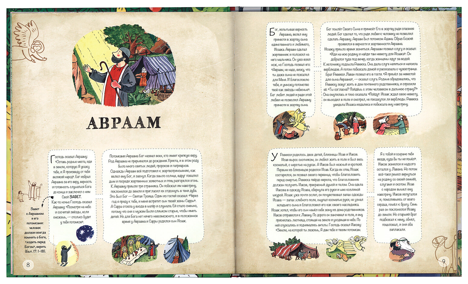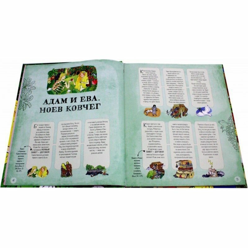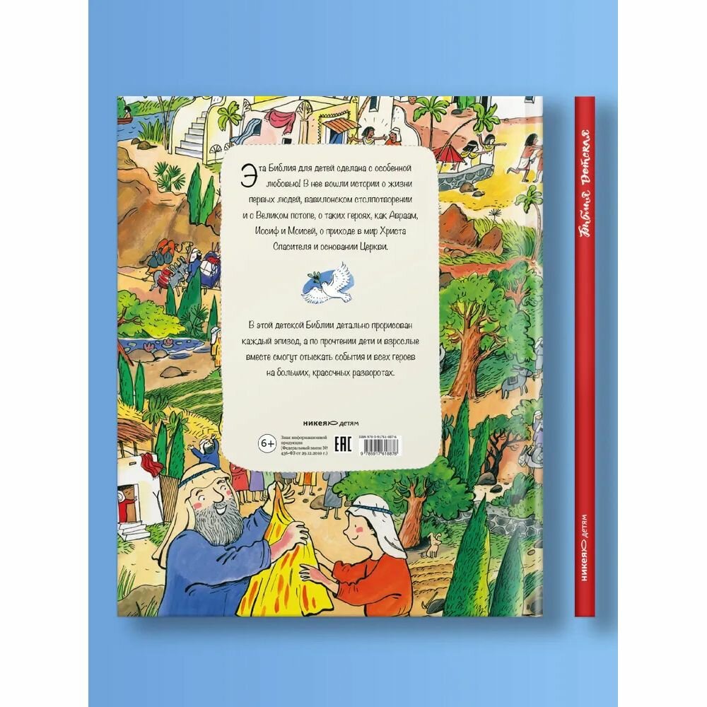 В этой красочно иллюстрированной детской Библии каждый эпизод в пересказе Священной истории детально прорисован, и эти детали складываются в большую подробную картинку на целый разворот - виммельбух. Сначала дети и взрослые прочитают историю о библейских героях, а потом вместе будут следить за событиями и смогут отыскать всех героев на больших, красочных разворотах. Герои словно оживают, и их истории хорошо запоминаются. Библия становится понятнее и ближе для детей, и им обязательно захочется узнать и прочитать больше.
