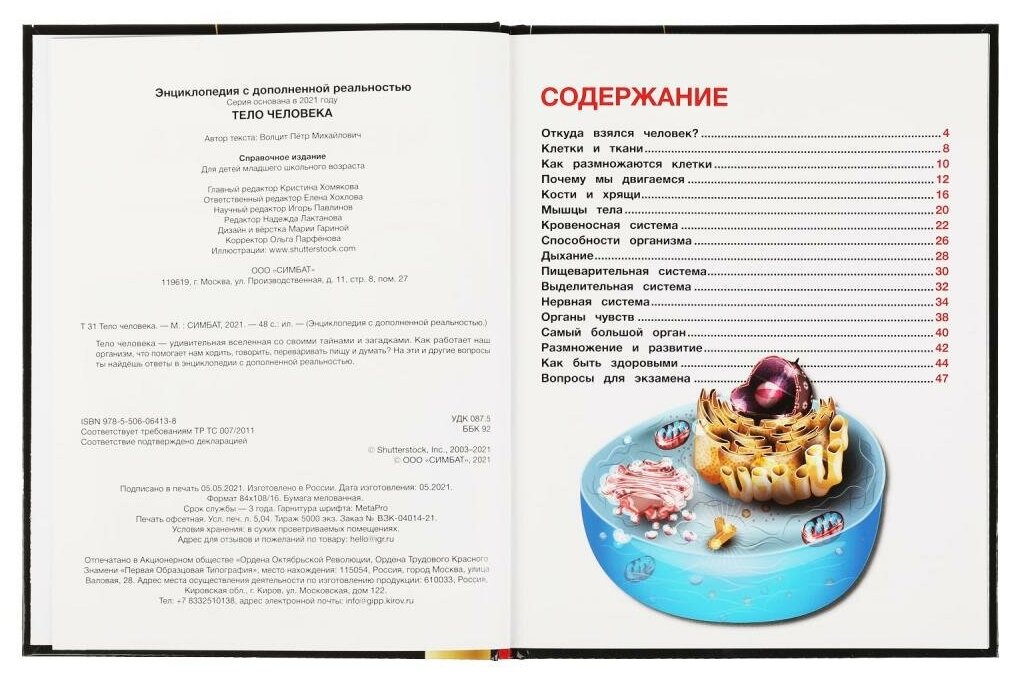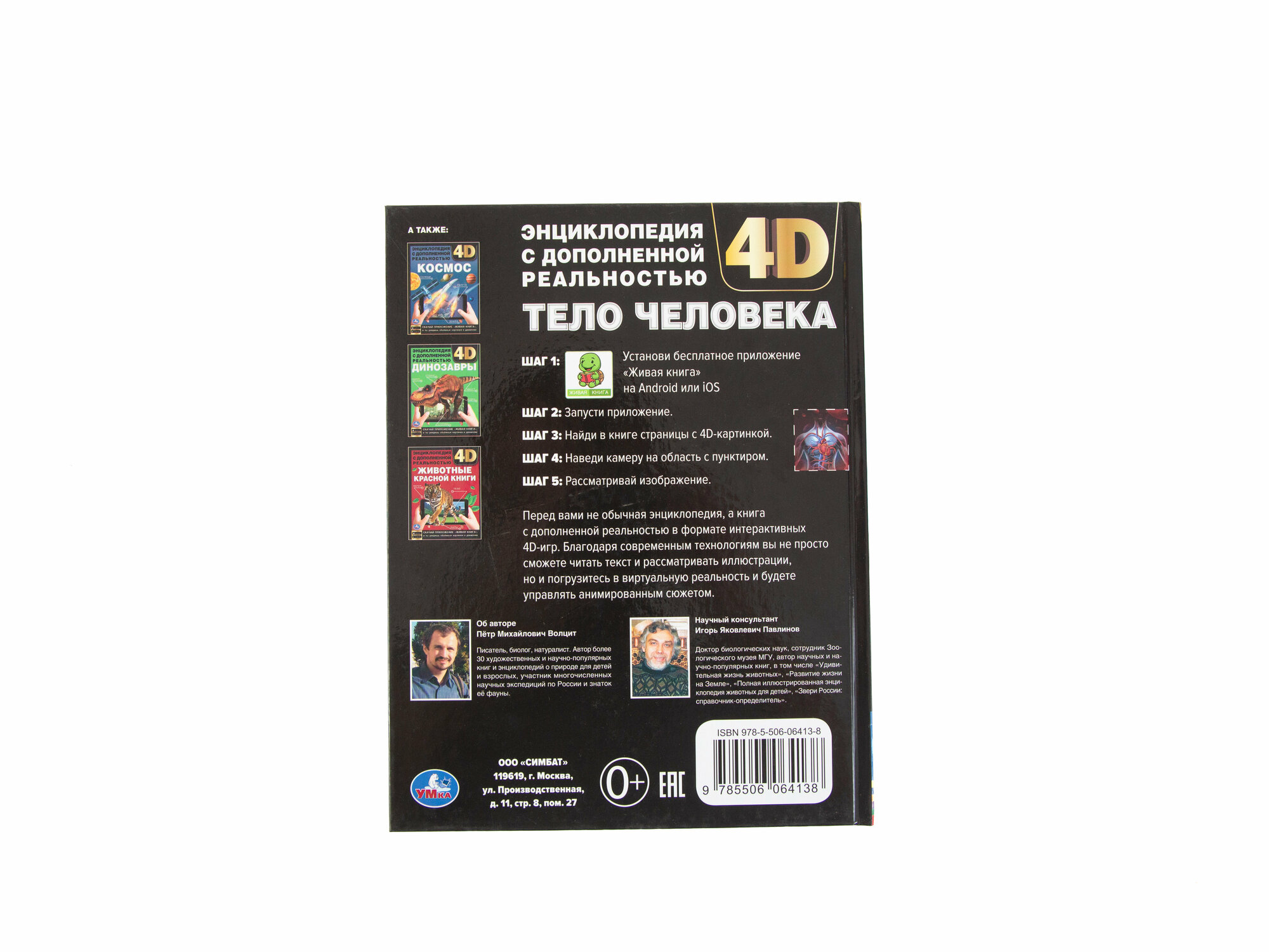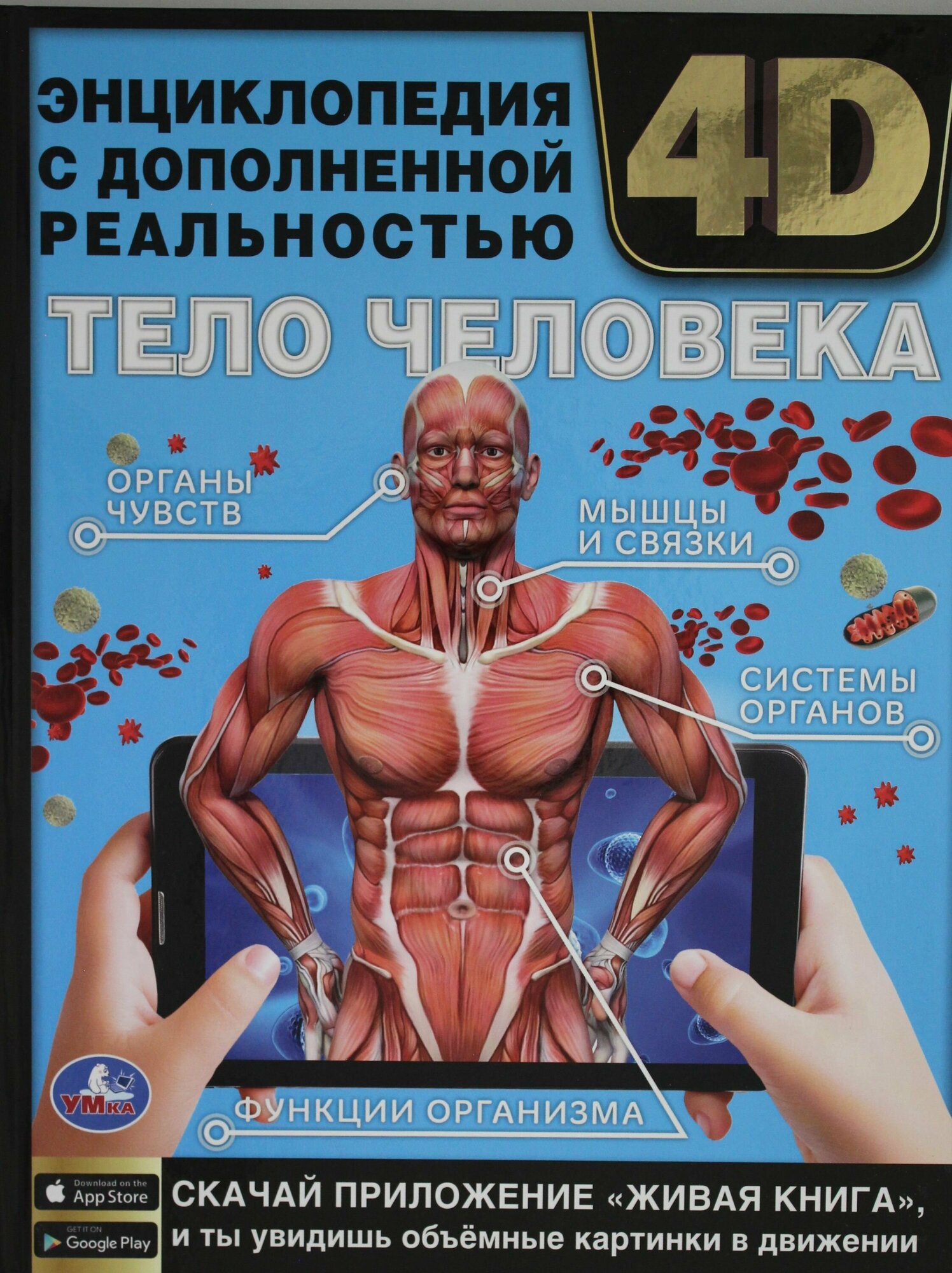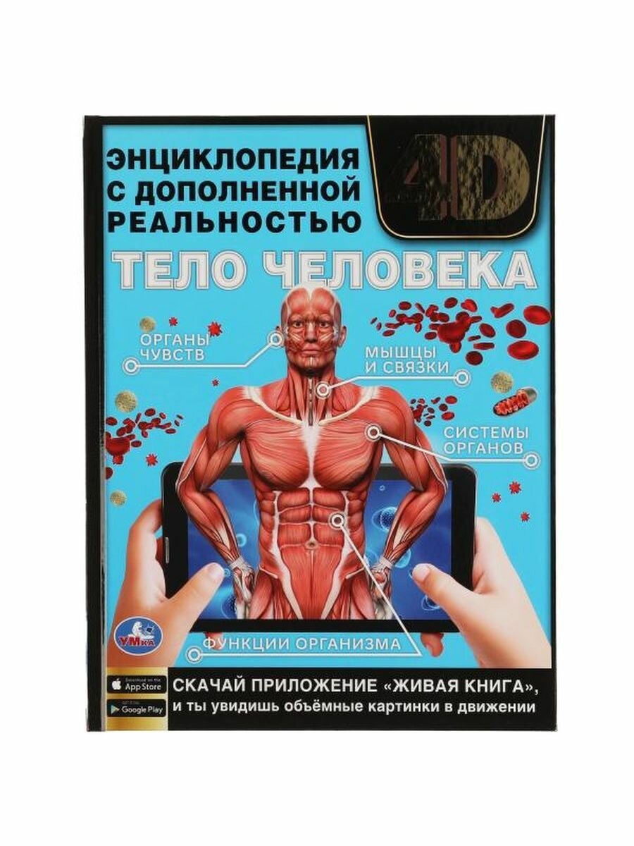 Энциклопедия с дополненной реальностью 4D «Тело человека» ТМ «УМка» обязательно понравится маленьким любознайкам:- объёмные картинки в движении (нужно приложение «Живая книга»)- увлекательно и познавательно- красочные иллюстрации- развивающие вопросы- твёрдый переплётЭта занимательная энциклопедия расскажет юному читателю о том, как устроено наше тело, как функционирует наш организм и какие функции выполняет. Для большей наглядности книга оснащена технологией дополненной реальности, для её работы необходимо установить специальное приложение. При наведении камеры телефона на отмеченную пунктиром область страницы читатель погрузится в виртуальную реальность и сможет управлять анимированным сюжетом. Такой способ подачи материала в совокупности с яркими иллюстрациями и удивительными фактами увлечёт ребёнка и поможет ему быстро, эффективно и с удовольствием усвоить новую информацию.Чтение энциклопедии ТМ «УМка» способствует расширению кругозора и развитию:- визуального восприятия- внимания- памяти- усидчивостиОбъём: 48 стр. Формат: 197 х 255 мм (А4).Материал: офсетная бумага, мелованная.Рекомендовано детям младшего школьного возраста.