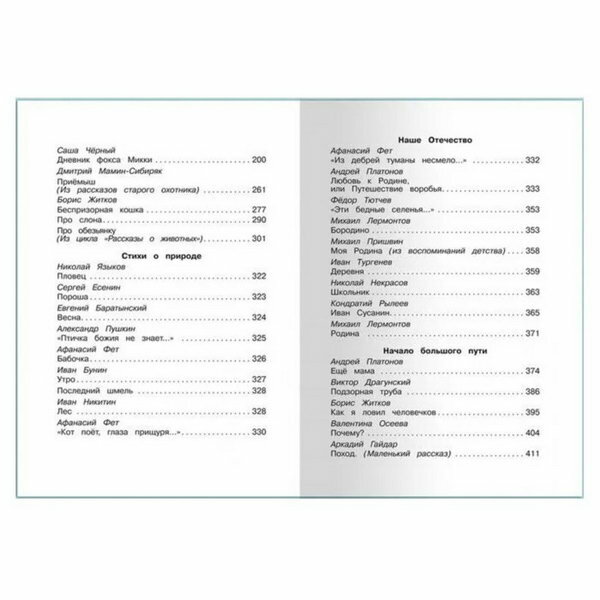 В сборник вошли рассказы, стихи и сказки известных российских писателей, а также былины о богатырях, рекомендованные к прочтению в четвертом классе общеобразовательной начальной школы. Тексты произведений представлены без сокращений, напечатаны на хорошей бумаге крупным шрифтом и содержат цветные иллюстрации ведущих российских художников. Средний формат издания делает его удобным для домашней или школьной библиотеки и необременительным грузом в рюкзаке школьника.