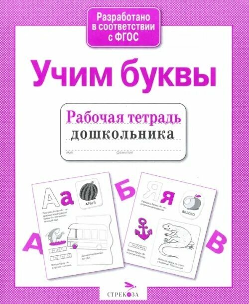 Стрекоза Рабочая тетрадь дошкольника Учим буквы Пособие для совместных занятий детей и родителей. Данная тетрадь предназначена для выполнения упражнений, которые помогут вашему ребенку подготовиться к школе. Советы взрослым: Обеспечьте ребёнку удобное и хорошо освещенное рабочее место. Следите за осанкой ребёнка. Читайте и объясняйте ребёнку текст задания. Не спешите помогать ребёнку, поощряйте его стремление к самостоятельности. Хвалите ребёнка за успехи и не заостряйте внимание на ошибках.