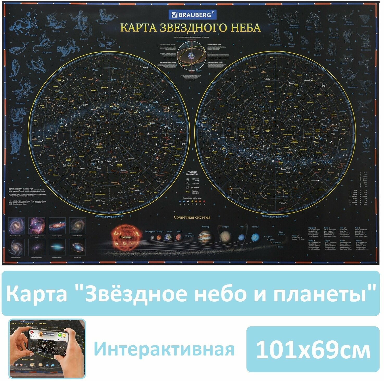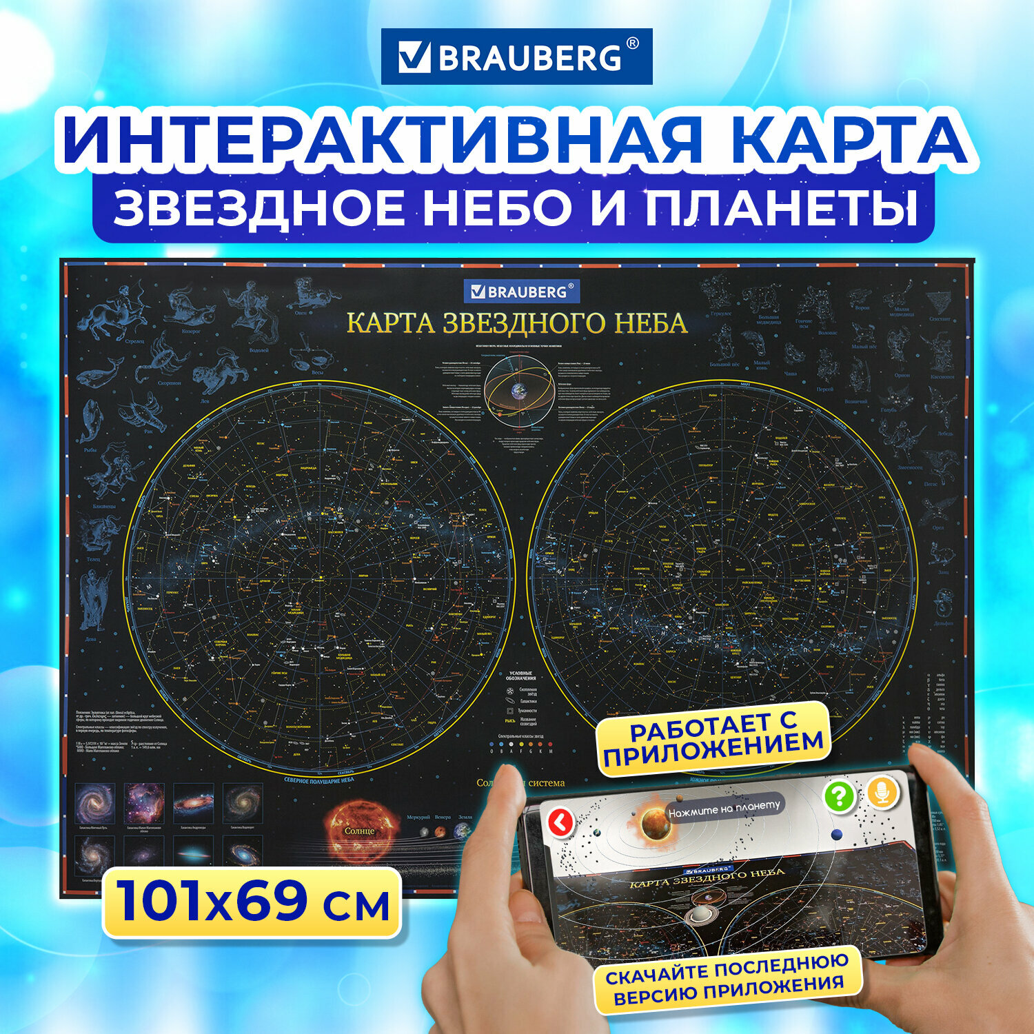 Карта Звездное небо и планеты Brauberg 101х69cm, 2021