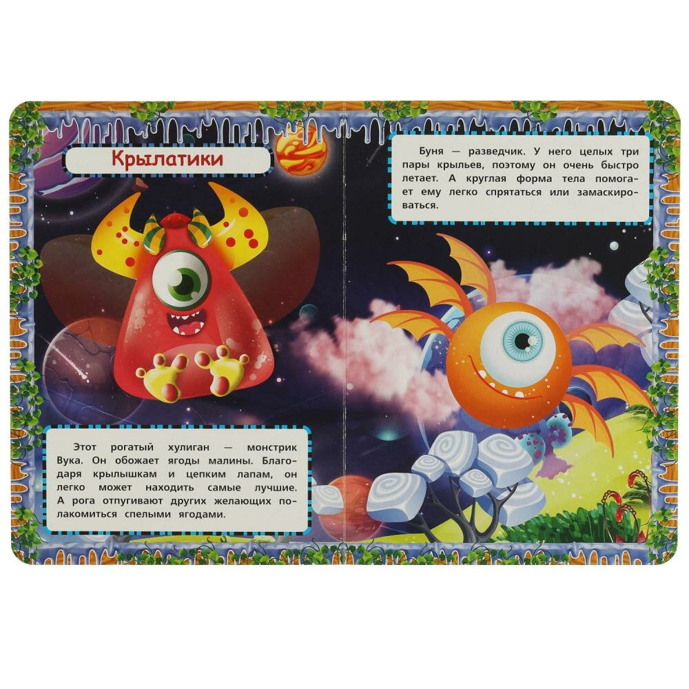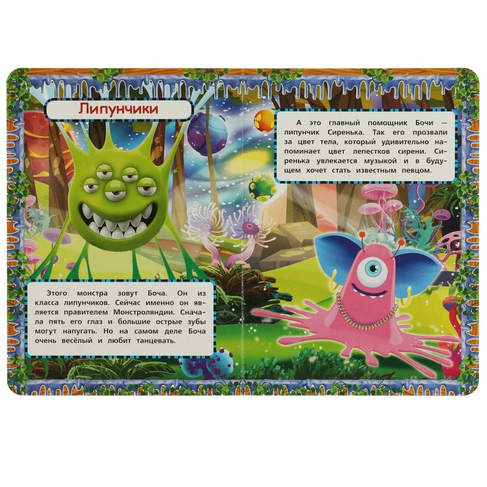 Эта яркая книга познакомит маленького читателя с разными монстриками, которые живут в Монстроляндии. Этой удивительной страной руководит липунчик Боча, а ещё здесь можно встретить ушастиков, крылатиков и пушистиков. Малыш с удовольствием будет разглядывать красочные картинки и слушать удивительную историю про забавных монстриков. Благодаря небольшому размеру книгу удобно брать с собой в дорогу.
