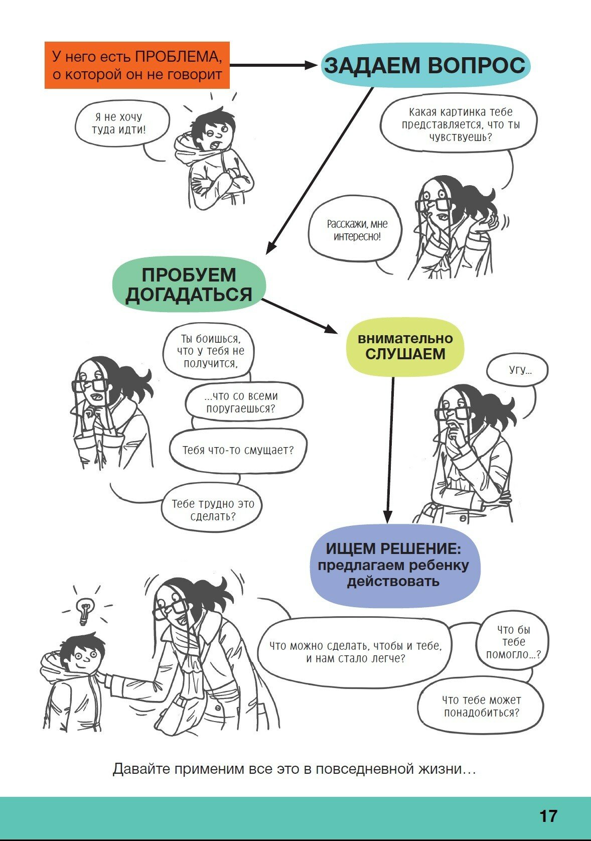 Все мычитали книжки попсихологии для родителей: разбор конфликтных ситуаций, длинные списки правильных инеправильных родительских реакций. Что изэтих ценных советов вывсостоянии вспомнить после тяжелого рабочего дня, когда ваш младший ребенок всупермаркете валится напол, требуя купить вот эти конфеты— немедленно! —астарший проводит весь вечер закомпьютерными играми вместо того, чтобы готовиться кконтрольной? Смешные лаконичные комиксы французских авторов помогут вам увидеть сложные ситуации глазами ребенка идоговориться исребенком, иссамим собой. Эта методика придумана для детей сповышенной чувствительностью (всочетании сосверходаренностью, СДВГ, РАС, нарушениями «дис» ит.д.), ноподойдет идля всех остальных детей. Книга стала бестселлером воФранции, ибыла продана более чем 20-тысячным тиражом впервый год продаж. ОТЗЫВЫ ЧИТАТЕЛЕЙ И КРИТИКОВ Абсолютный, как говорят, must have для родителей. Много есть книг про то, почему дети ведут себя ужасно, их нужно долго читать, обдумывать, выбирать нужное — а потом в другой книге обязательно окажется, что всё не так. Экспериментировать на ребёнке с разными подходами и теориями — вообще дело сомнительное. А уж усталому после работы человеку и вообще хотелось бы чего-то простого, понятного и, главное, быстро. Вот поэтому комикс, и идея не в том, чтобы долго размышлять, кто виноват, а быстро ликвидировать аварию. Regnum Она представляет собой понятный и наглядный сборник комиксов, которые изображают разнообразные сложные ситуации в жизни родителей и детей, и помогает посмотреть на них глазами ребенка, подробно разбирает их и дает возможность научиться решать конфликты максимально бережно. Книга адресована родителям чувствительных детей (в том числе с РАС, СДВГ и сверходаренностью), но будет полезна и тем, кто растит нейротипичного ребенка (в конце концов, истерики бывают практически у всех). Книга хороша как лекарственное средство для укрепления духа и уничтожения вредной мысли о том, что постоянно что-то делаешь не так.