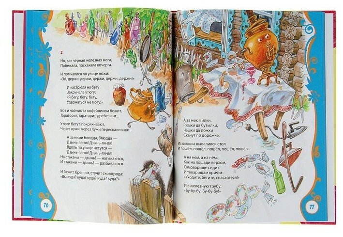 В книгу вошли популярные произведения детского писателя: сказки "Муха-Цокотуха", "Тараканище", "Телефон", "Мойдодыр", "Федорино горе", "Краденое солнце", "Айболит"; стихи "Закаляка", "Ёжики смеются" и другие, а также загадки. Содержание:"Закаляка". "Слониха читает". "Поросёнок". "Ёжики смеются". "Бутерброд". "Федотка". "Черепаха". "Огород". "Свинки". "Бебека". "Головастики". "Ёлка". "Муха-Цокотуха". "Тараканище". "Телефон". "Мойдодыр". "Федорино горе". "Краденое солнце"."Айболит".