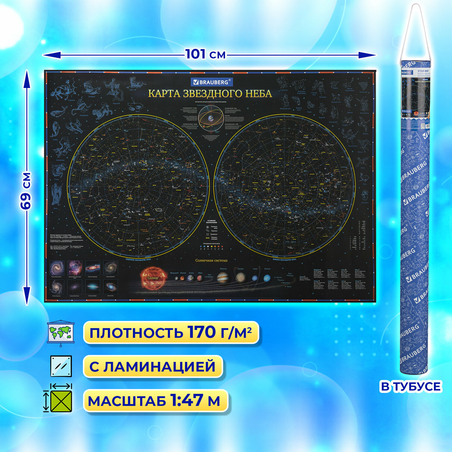Карта Звездное небо и планеты Brauberg 101х69cm, 2021