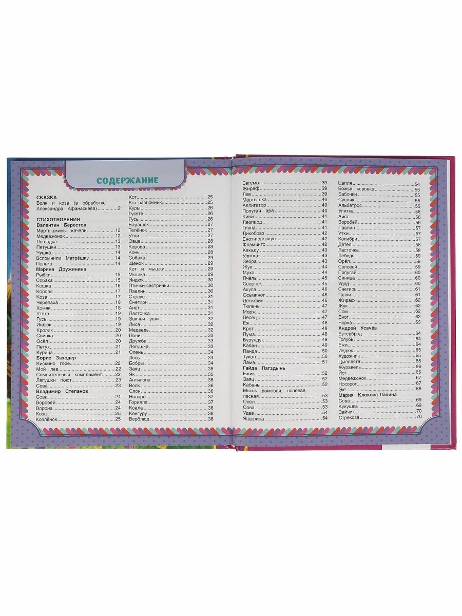 Эта яркая книга с интересной сказкой, добрыми стихами, увлекательными загадками, весёлыми потешками и песенками займёт достойное место в детской библиотеке. Увлекательные тексты в сопровождении красочных иллюстраций скрасят досуг ребёнка. Благодаря удобному размеру книгу можно взять с собой в дорогу. Книга «365 сказок и стихотворений о животных» из серии «Золотая классика» станет отличным подарком для малыша: - сказка в обработке А.Н. Афанасьева «Волк и коза», - стихотворения В. Берестова, М. Дружининой, Б. Заходера, В. Степанова, Г. Лагздынь, А. Усачёва, М. Клоковой-Лапиной, Э. Мошковской, И. Сытина, Г. Державина, - потешки и песни, - считалки, - загадки В.… Степанова, - пословицы и поговорки, - красочные крупные иллюстрации, - твёрдый переплёт. Материал: офсетная бумага. Рекомендовано детям старшего дошкольного возраста.