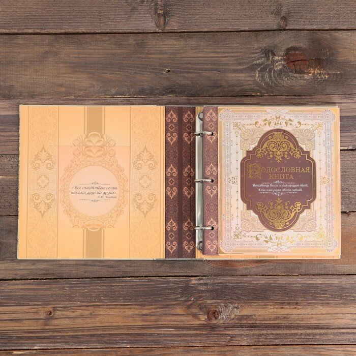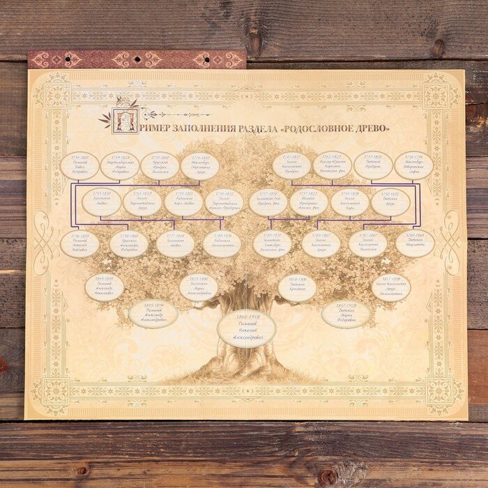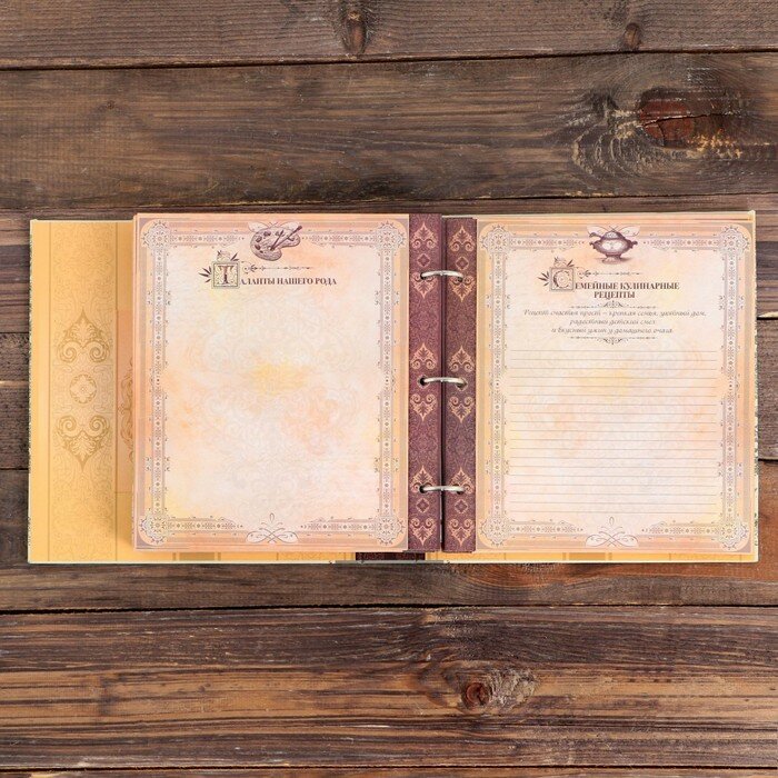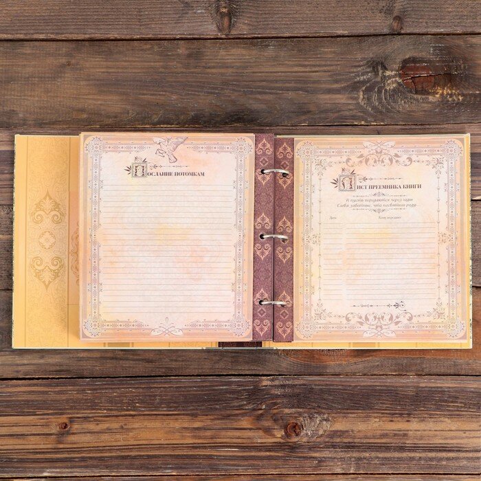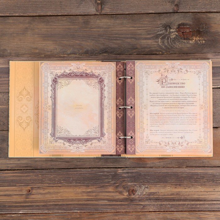 Наследие дома в одной книге! Семья — самое ценное, что есть в жизни человека. Кто из нас не хочет оставить память о себе и своей семье будущим поколениям? Ведь история может быть поводом для гордости! Для создания летописи вам пригодится родословная книга с местом под общее фото на обложке. Том хранится в изысканном футляре, который защитит страницы от повреждений. Книга оберегает важную информацию и помогает шаг за шагом погружаться в прошлое. Книга включает в себя: руководство по заполнению; разделы: «Род отца», «Род матери», «Род жены (мужа)», «Словарь терминов родства», «Происхождение фамилии», «Таланты нашего рода», «Семейные предания и воспоминания», «Награды и отличия рода», «Семейные и кулинарные рецепты», «История родного края»; индивидуальные листы; календарь семейных дат; послание потомкам. Книга на кольцах содержит 50 листов (включая инструкции и наименования разделов), лист генеалогического древа и 2 листа наклеек. Удобная организация позволит упорядочить данные по ветвям и хронологии. Напишите свою семейную летопись!