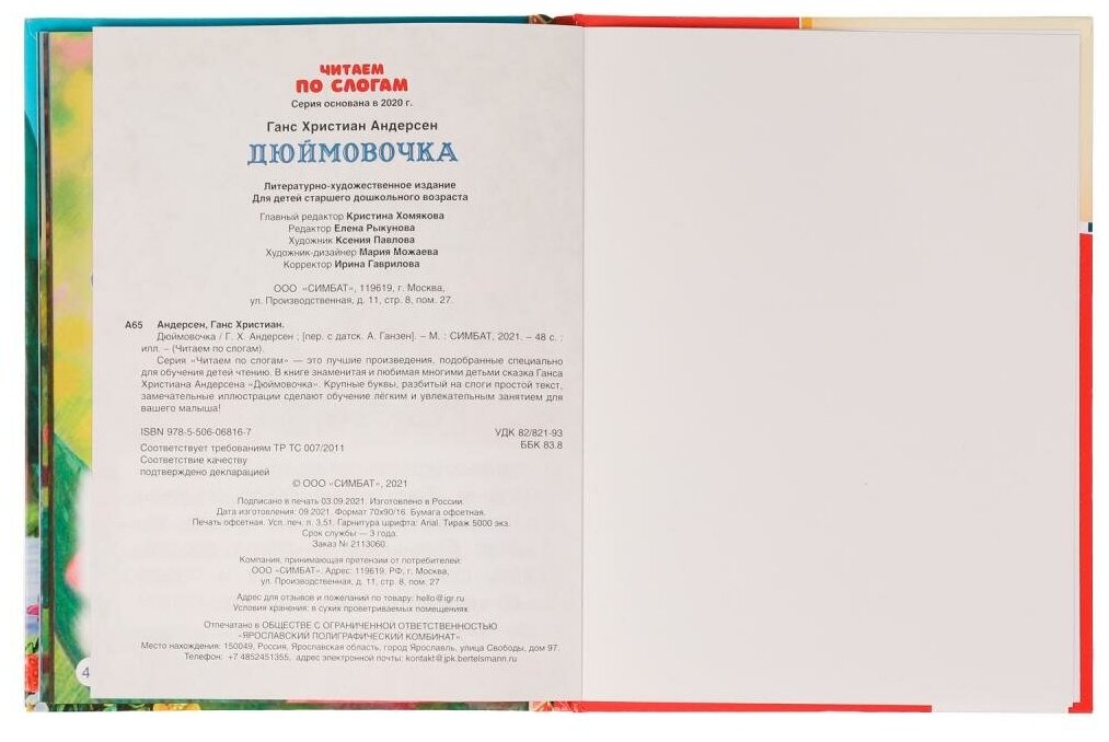 Книга «Г. Х. Андерсен. Дюймовочка» из серии «Читаем по слогам» ТМ «УМка» - отличный вариант для первого самостоятельного чтения