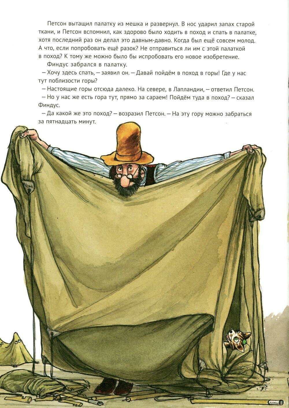 Знаете что Финдус нашел на чердаке у Петсона? Ни за что не угадаете! Самую настоящую палатку. Есть палатка - готов путешествовать. И не тратя времени на раздумья, верные друзья отправляются в путь. Для чтения взрослыми детям.