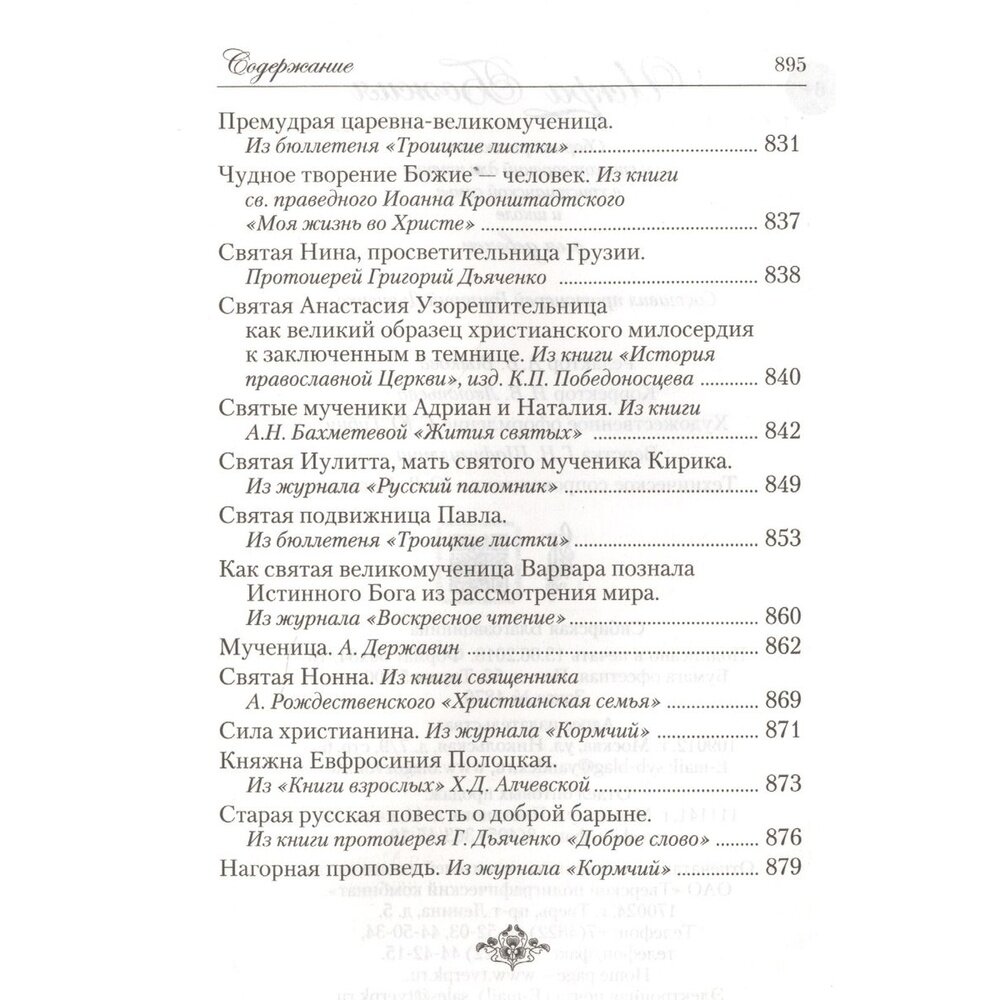 Эта книга является переизданием вышедшего в 1903г. популярного сборника "Искра Божия", составленного известным духовным писателем, протоиереем Григорием Дьяченко. "Искра Божия" ориентирована на религиозно-нравственное воспитание девочек, девиц и жен и явилась первым в российской педагогической литературе опытом создания собственно книги для девочек. Ее цель - показать, что истинное призвание женщины составляют семья, материнство и воспитание детей. В сегодняшние времена так называемой феминизации далеко не лишним будет напоминание об этом великом предназначении. Настоящее издание станет полезным для чтения в воскресной школе и в семейном кругу. В сборник вошли жития святых, рассказы, сказки, поговорки, пословицы и стихи. Составитель: протоиерей Григорий Дьяченко.