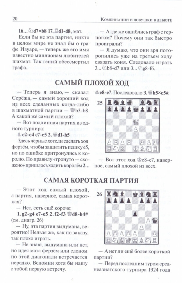 Цель книги - научить любителей шахмат дебютным комбинациям и ловушкам. Как играть в начале партии? Что надо делать, чтобы не попадать в ловушки, и как самому научиться их расставлять? Вы найдете ответы в этой замечательной книге. Автор, знаменитый шахматный литератор и тренер, в увлекательной форме знакомит читателя со своей коллекцией типичных дебютных комбинаций и ловушек, которую собрал за много лет. В данном издании объединены оба предыдущих (включая иллюстрации).