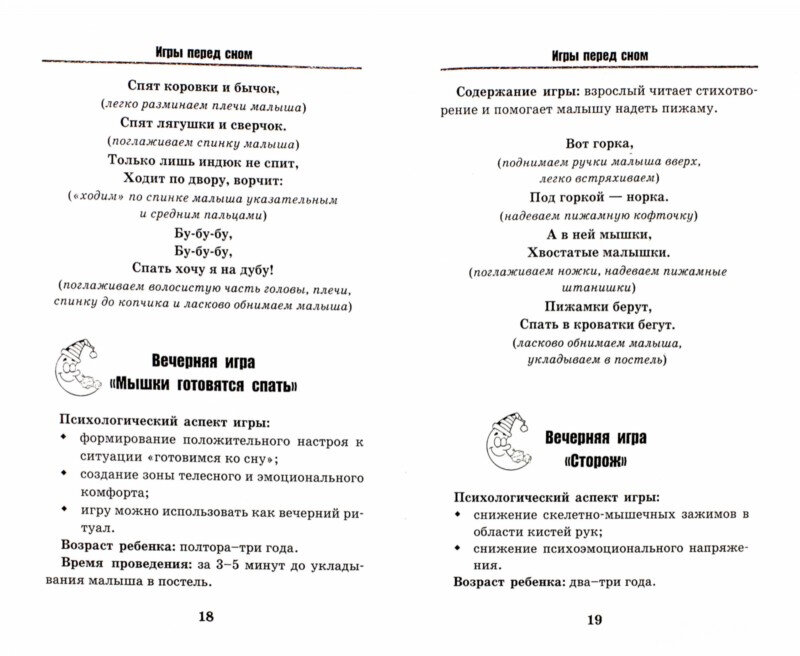 В книге «Игры перед сном» собраны рекомендации и практический материал, позволяющие родителям снизить негативный настрой малыша к ситуации «пора спать», а также сформировать позитивное отношение к этому режимному моменту.