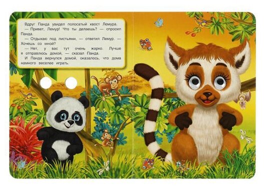 Малыш с удовольствием отправится навстречу приключениям вместе с очаровательным Пандой, познакомится с его друзьями и узнает, как они живут в жаркой Африке. Увлекательная история сопровождается большими красочными картинками с волшебными подвижными глазками, благодаря которым нарисованные животные выглядят совсем как настоящие. Компактный размер книги позволяет взять её с собой в дорогу. Рекомендовано детям старшего дошкольного возраста.
