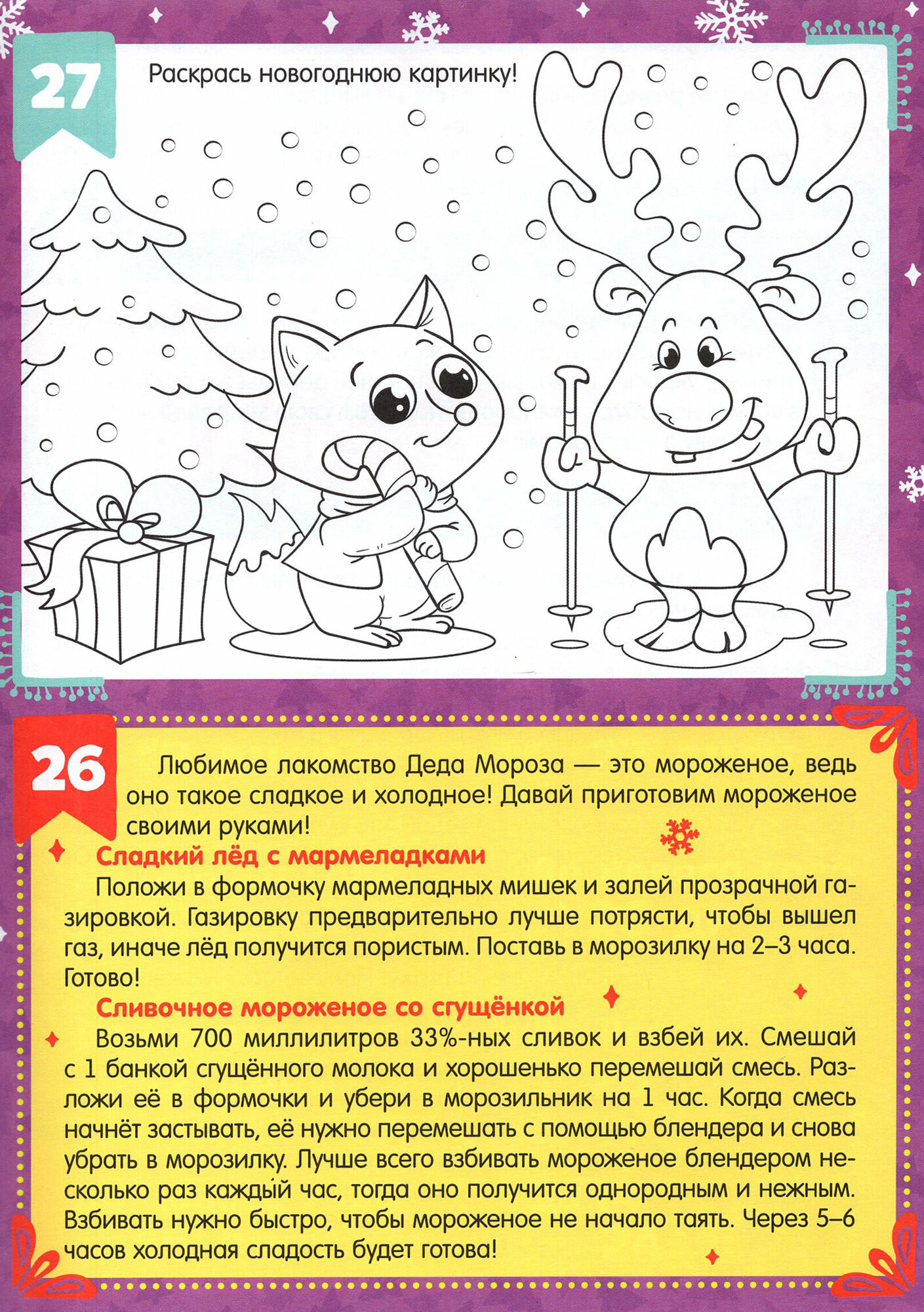 Адвент-календарь с наклейками "В ожидании Нового года" - это верный помощник малыша в изучении окружающего мира. Теперь он сможет: - сделать гирлянды и нарядить ёлочку; - написать письмо Дедушке Морозу; - узнать об удивительных фактах окружающего мира; - раскрасить сказочных персонажей; - приготовить любимые лакомства Деда Мороза вместе с мамой и бабушкой; - смастерить новогоднюю поделку; - устроить настоящее сказочное представление со всей семьёй; - разукрасить дни в календаре ожидания. Родители отмечают каждое выполненное задание малыша с помощью наклеек. Ожидайте Новый год с пользой!