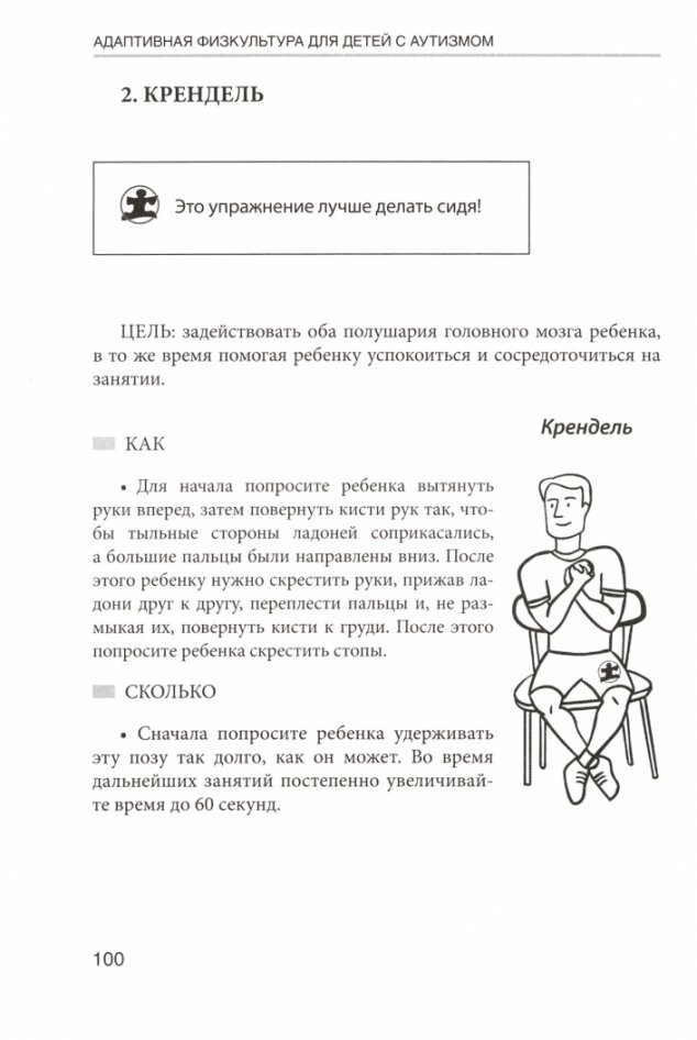 Руководство Дэвида Геслака, авторитетного специалиста в области адаптивной физкультуры, включает оригинальную и признанную в разных странах мира методику физического развития детей с РАС. Данная методика построена с учетом психофизиологических особенностей детей с аутизмом и направлена на развитие у них адекватного образа тела (знание частей тела и понимание, как они работают), равновесия, статической и динамической гибкости, моторной координации, на улучшение функционального состояния мышечной и сердечно-сосудистой систем. Опираясь на предлагаемую методику, родители, тренеры и педагоги смогут самостоятельно разрабатывать программы упражнений в соответствии с потребностями конкретного ребенка и эффективно их применять, задействуя мотивацию и используя методы визуальной поддержки. Занятия по программе упражнений будут способствовать улучшению физического и психологического состояния ребенка с РАС, повышению его самооценки и созданию более гармоничных взаимоотношений с окружающими. Издание адресовано родителям детей с РАС, педагогам и тренерам.
