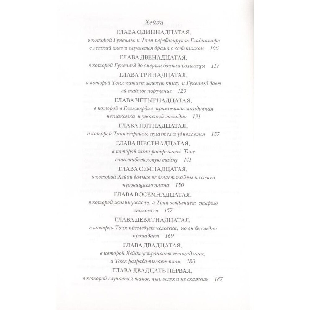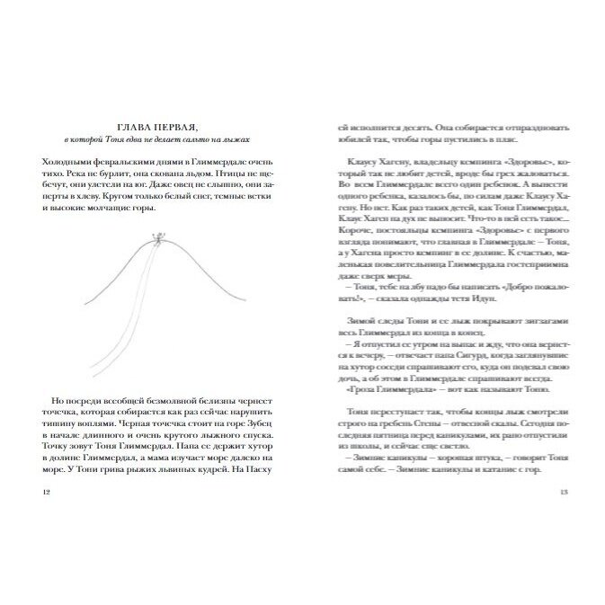 Девочка Тоня по прозвищу "гроза Глиммердала" - единственный ребенок в норвежской глухой деревушке. Тоне десять лет, у нее есть снегокат и твердая уверенность в том, что главное в жизни - "скорость и самоуважение". А еще у Тони есть лучший друг - старик Гунвальд, который печет для нее кексы и играет ей на скрипке. "Гунвальд, что бы ты делал без меня?" - часто спрашивает Тоня. "Я бы сам закопал себя в землю и сдох", - отвечает Гунвальд". "Тоня Глиммердал", вторая книга Марии Парр, - это повесть о настоящей дружбе и о том, что иногда дети оказываются намного мудрее взрослых, помогая им примириться со своим прошлым и радоваться настоящему. Норвежская детская писательница Мария Парр - автор трех книг, трех абсолютных мировых бестселлеров: "Вафельное сердце", "Тоня Глиммердал" и "Вратарь и море" (продолжение "Вафельного сердца"), - все они переведены более чем на 20 языков и продаются многотысячными тиражами.