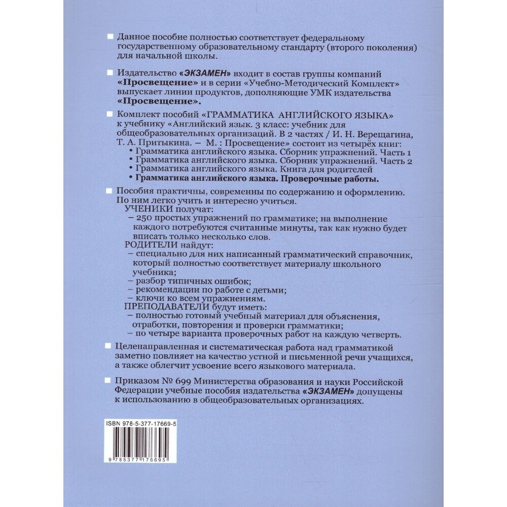 Книга Барашкова Е.А. Грамматика. Проверочные работы. 3 класс. К И.Н. Верещагиной (Барашкова Елена Александровна); Экзамен, 2023