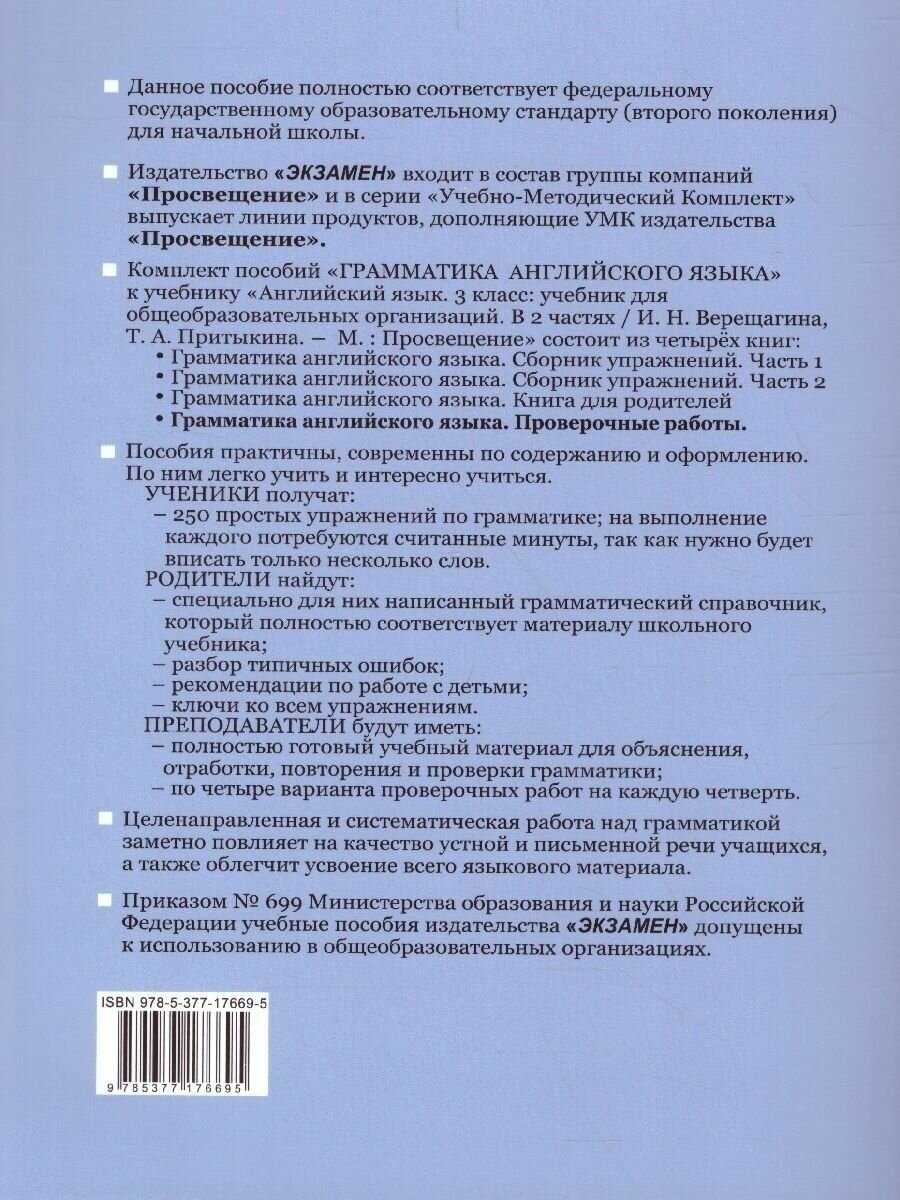 Барашкова Е.А. Грамматика английского языка. Проверочные работы - пособие полностью соответствует федеральному государственному образовательному стандарту (второго поколения) для начальной школы.