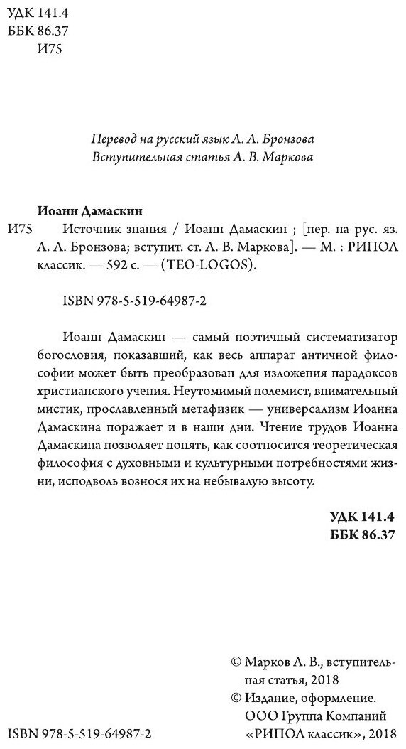 Книга: Книга Источник Знания (Иоанн Дамаскин)