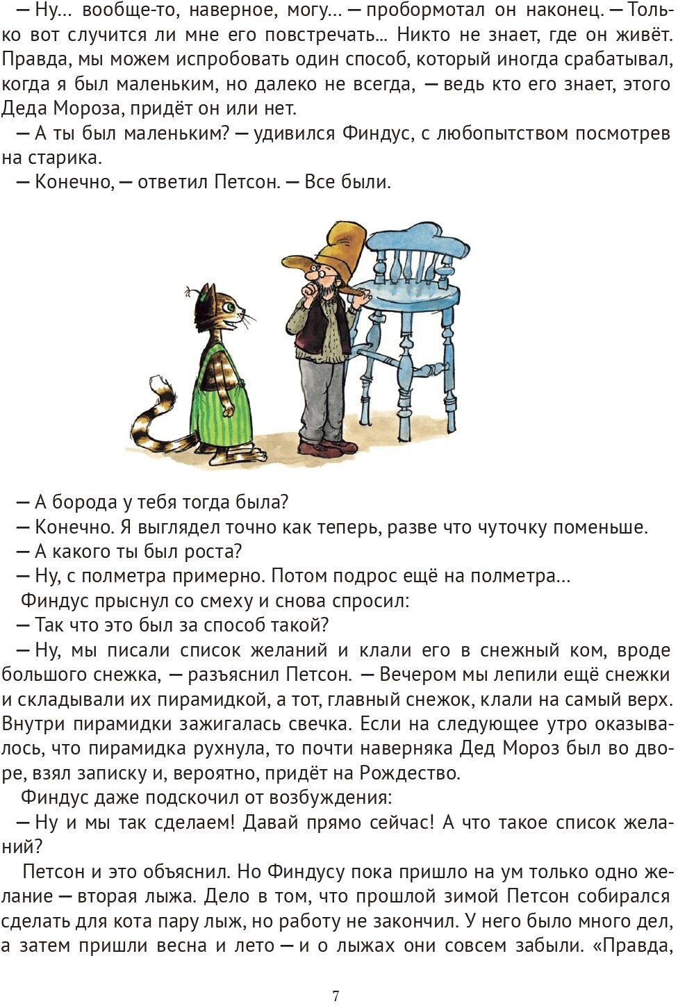 Старик Петсон и котёнок Финдус готовятся встретить Рождество. "Но какое же Рождество без Деда Мороза?" - думает Финдус. "Но ведь Деда Мороза не существует, где его взять?." - вздыхает Петсон. И тут ему в голову приходит блестящая идея! Для среднего школьного возраста.