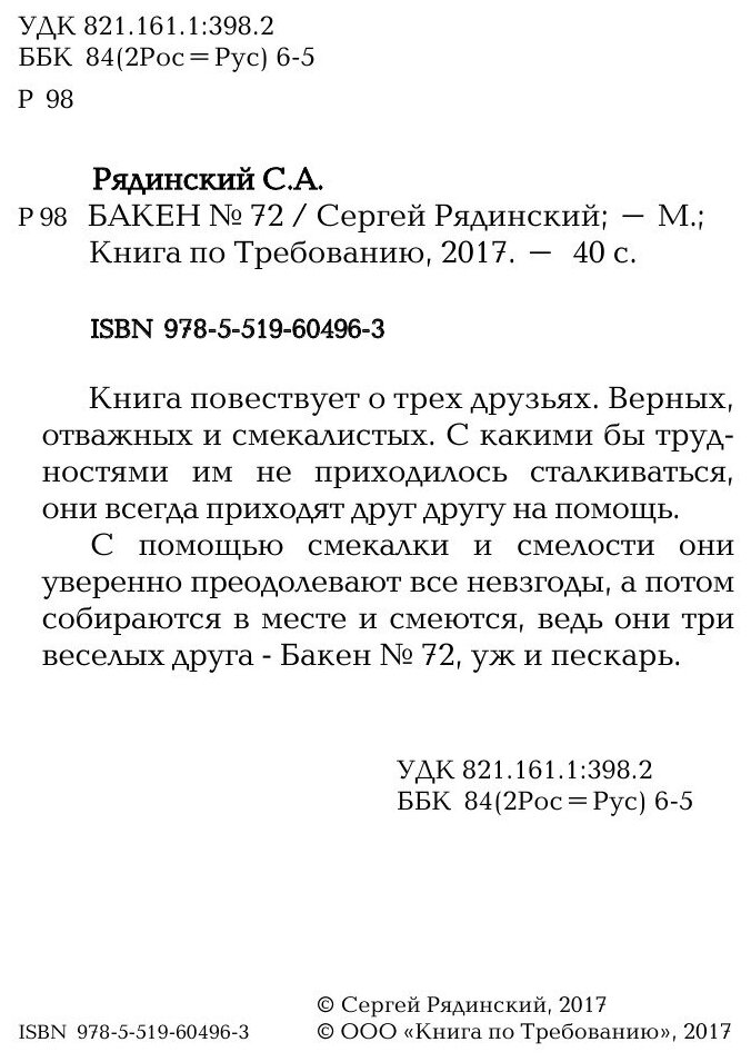 Книга: Книга БАКЕН № 72 (Сергей Рядинский), 2017