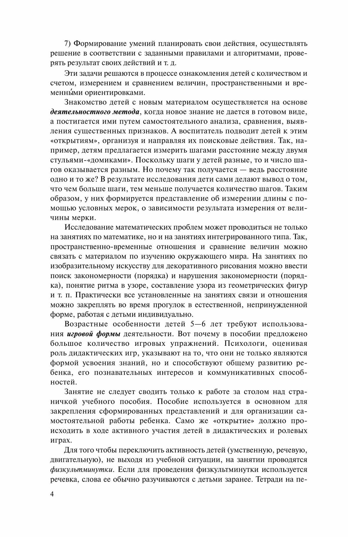 Методическое пособие по развитию математических представлений детей 5-6 и 6-7 лет является частью непрерывного курса математики "Учусь учиться". Включает краткое описание концепции, программы и организации практических занятий с детьми. Дополнительные материалы для организации индивидуальной работы с детьми содержатся в тетрадях "Раз - ступенька, два - ступенька.", ч.1-2, тех же авторов.Учебно-методический комплект "Раз - ступенька, два - ступенька." ориентирован на развитие мышления, творческих способностей детей, их интереса к математике. Подготовительная работа с детьми 3-4 и 4-5 лет может осуществляться по комплекту "Игралочка", ч. 1-2, авторов Л. Г. Петерсон и Е. Е. Кочемасовой, а продолжением для учащихся начальной школы является курс математики Л. Г. Петерсон.Пособие может использоваться в системе дошкольного образования и для индивидуальной работы с детьми.6-е издание, стереотипное.