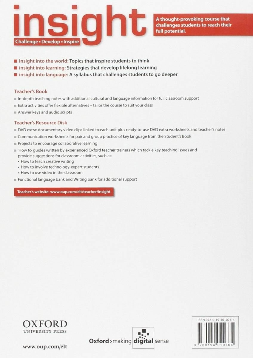 На сегодняшний день товар «Книга: Книга Insight: Elementary: Teacher's Book with Teacher's Resource Disk (Jayne Wildman, Fiona Bedoal, Clare Thacker); Oxford University Press, 2013» можно купить с кешбеком в 1 магазине: Яндекс.Маркет