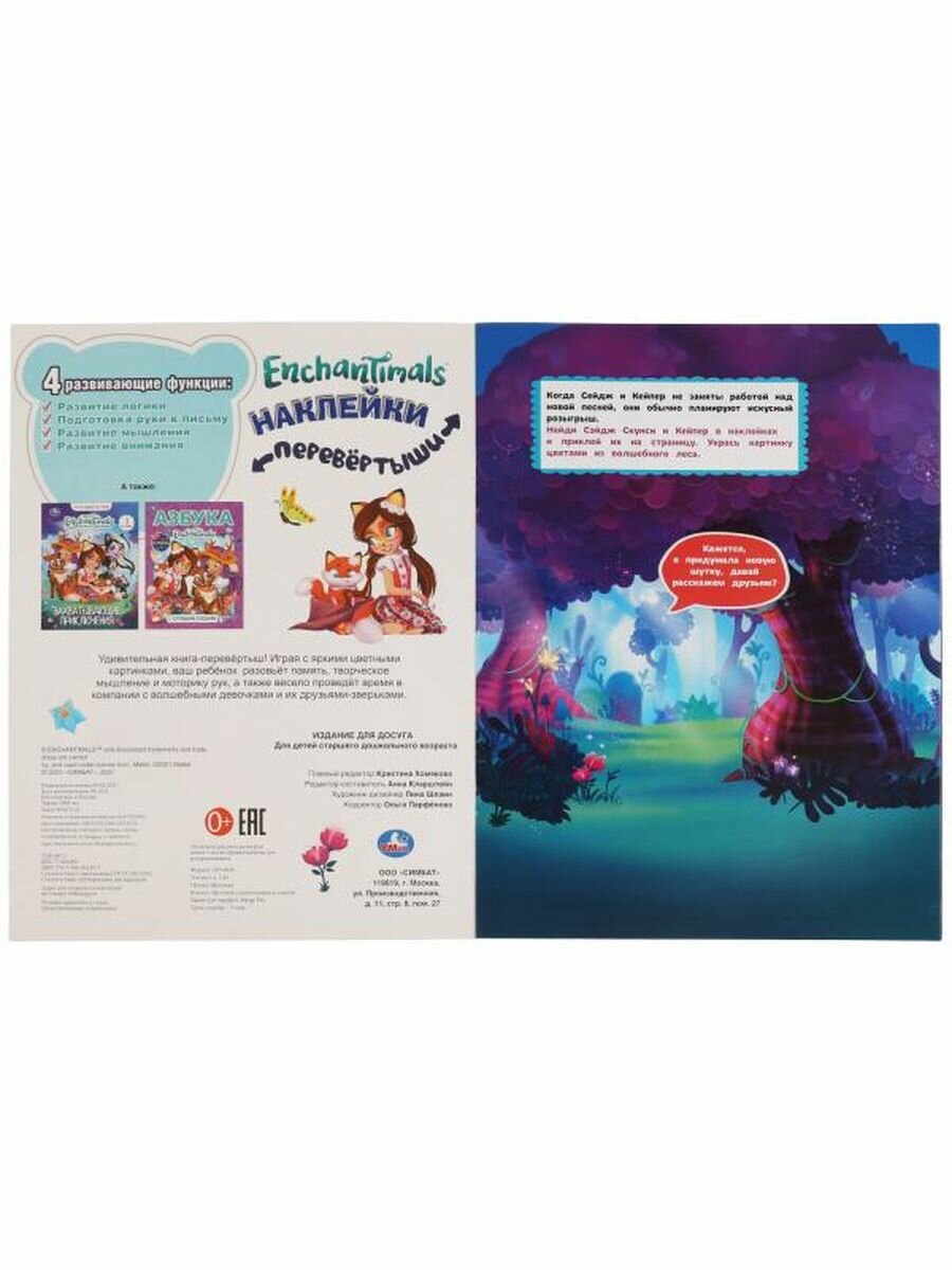Активити-перевертыш с наклейками "Enchantimals. Хранительницы леса/Лесные красавицы" ТМ "УМка" станет отличным подарком для маленького поклонника мультсериала про волшебных подружек и их питомцев: яркие наклейки; красочные страницы; любимые персонажи; обложка-перевертыш; крупный формат. Малыш весело и с пользой проведет время, выполняя интересные задания и приклеивая яркие стикеры с изображением персонажей любимого мультфильма.