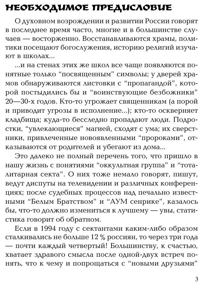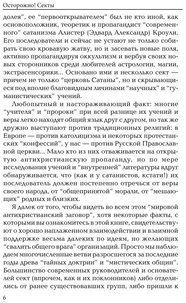 В современном мире всё чаще можно услышать о новых религиях и различных сектах. Казалось бы, вполне безобидные люди протягивают нам добрые книги о любви и мире. Но подобные уловки рассчитаны на слабых людей, неуверенных в себе, которые ещё не понимают всей серьёзности проблемы попадания в секту.. Эта книга расскажет вам об основных, наиболее опасных и распространённых в России сектах и течениях. Читатель найдёт общие для всех случаев рекомендации по защите себя и своих близких от влияния «проповедников».