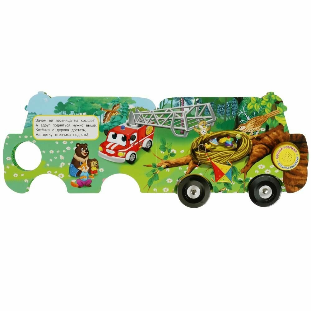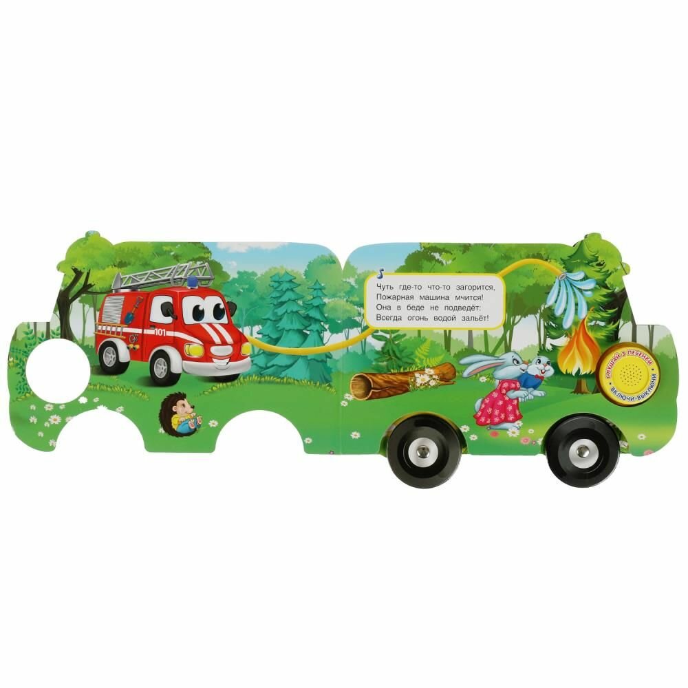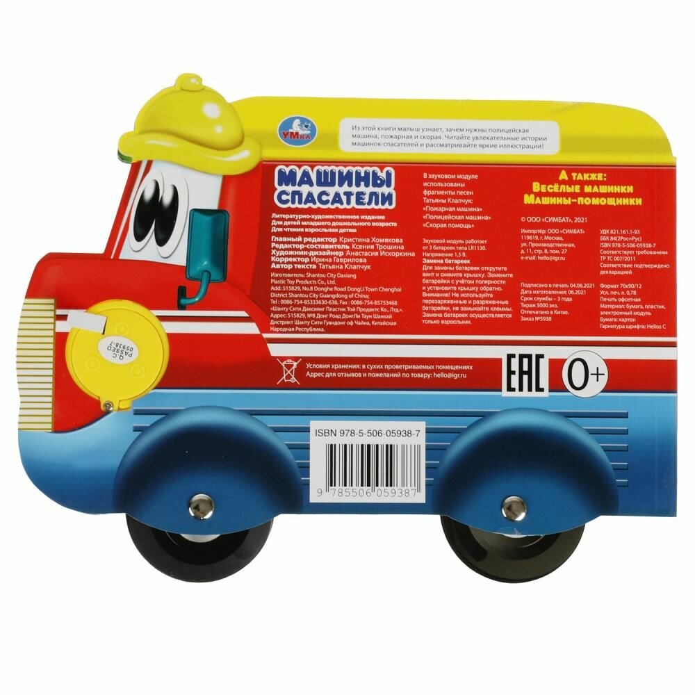Книга с колёсиками «Машины-спасатели» ТМ «УМка» станет прекрасным подарком для малыша: - 1 звуковая кнопка - 3 песни (на стихи из книги): «Пожарная машина», «Полицейская машина», «Скорая помощь» - знакомимся с разными видами специального транспорта - подвижные колёса - красочные иллюстрации Маленький любознайка с удовольствием будет рассматривать яркие картинки и узнавать о том, какие бывают машины и как они помогают людям. Три весёлые песенки не оставят малыша равнодушным, и он в скором времени начнёт подпевать им. Кроме того, благодаря подвижным колёсам, с этой книгой можно играть как с настоящей машинкой. Благодаря удобному формату книгу можно взять с собой в дорогу. Чтение книги с колёсиками ТМ «УМка» и игра с ней развивают: - образное мышление - мелкую моторику - логическое мышление - фантазию - внимание - память Объём: 8 стр. Формат: 210 х 140 мм. Материал: картон. Рекомендовано детям старшего дошкольного возраста.