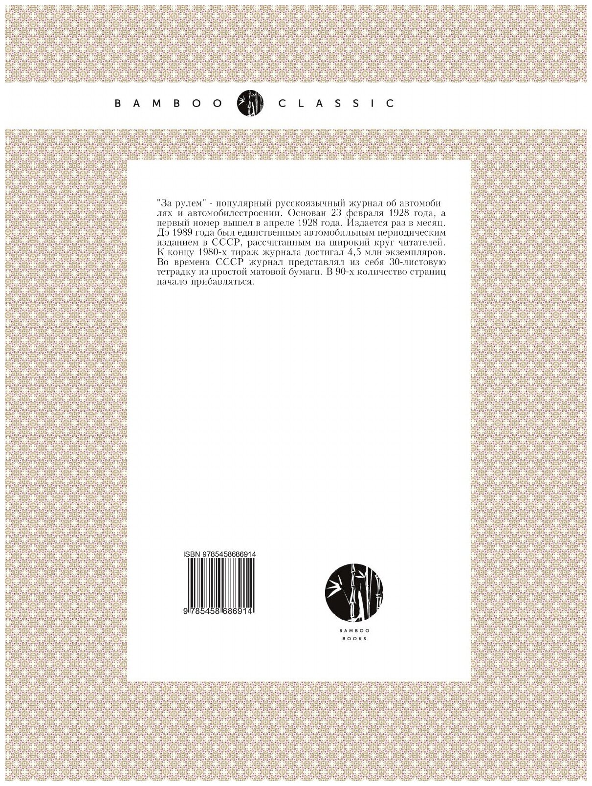 "За рулем" - популярный русскоязычный журнал об автомобилях и автомобилестроении. Основан 23 февраля 1928 года, а первый номер вышел в апреле 1928 года. Издается раз в месяц. До 1989 года был единственным автомобильным периодическим изданием в СССР, рассчитанным на широкий круг читателей. К концу 1980-х тираж журнала достигал 4,5 млн экземпляров. Во времена СССР журнал представлял из себя 30-листовую тетрадку из простой матовой бумаги. В 90-х количество страниц начало прибавляться.