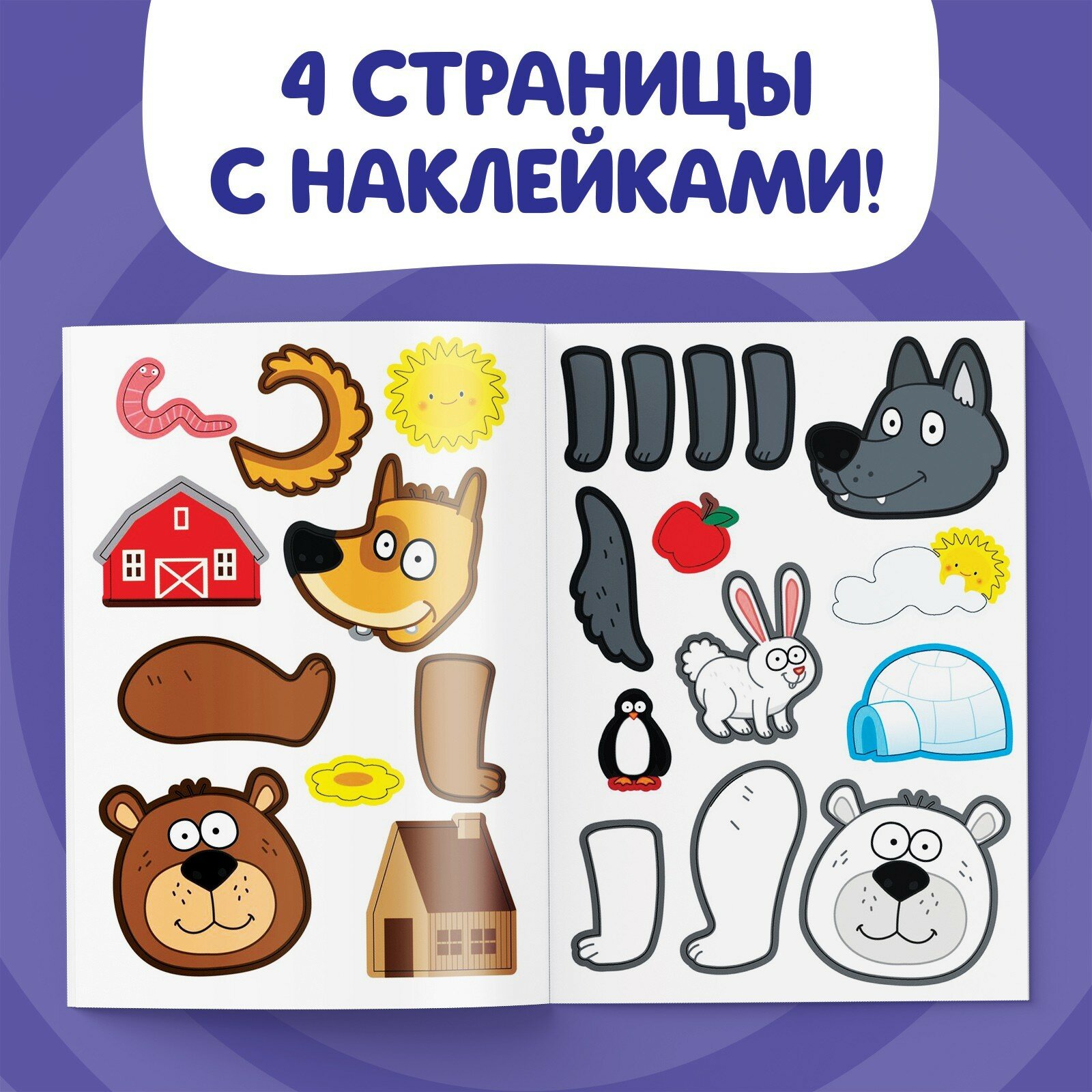 Книга аппликация наклейками «Весёлые зверята» 12 стр. «Синий трактор» (без автора), 2022