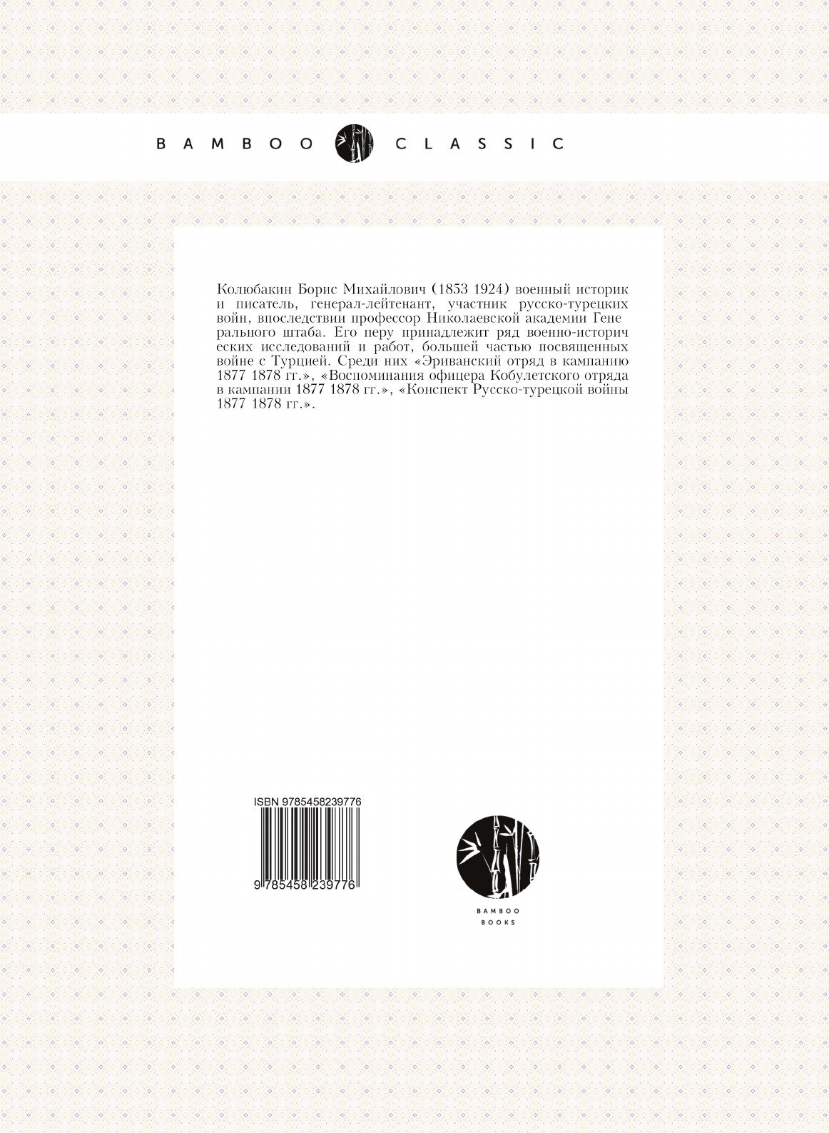 Эта книга - репринт оригинального издания (издательство "Типо-Литография А.Г. Розена", 1906 год), созданный на основе электронной копии высокого разрешения, которую очистили и обработали вручную, сохранив структуру и орфографию оригинального издания. Редкие, забытые и малоизвестные книги, изданные с петровских времен до наших дней, вновь доступны в виде печатных книг. Колюбакин Борис Михайлович (1853 1924) военный историк и писатель, генерал-лейтенант, участник русско-турецких войн, впоследствии профессор Николаевской академии Генерального штаба. Его перу принадлежит ряд военно-исторических исследований и работ, большей частью посвященных войне с Турцией. Среди них «Эриванский отряд в кампанию 1877 1878 гг.», «Воспоминания офицера Кобулетского отряда в кампании 1877 1878 гг.», «Конспект Русско-турецкой войны 1877 1878 гг.».