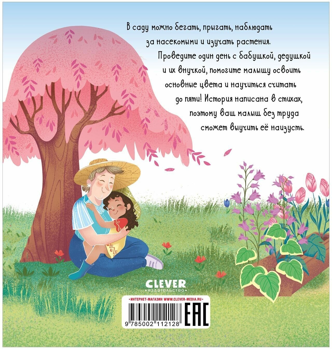 В саду можно бегать, прыгать, наблюдать за насекомыми и изучать растения. Проведите один день с бабушкой, дедушкой и их внучкой, помогите малышу освоить основные цвета и научиться считать до пяти! История написана в стихах, поэтому ваш малыш без труда сможет выучить её наизусть.